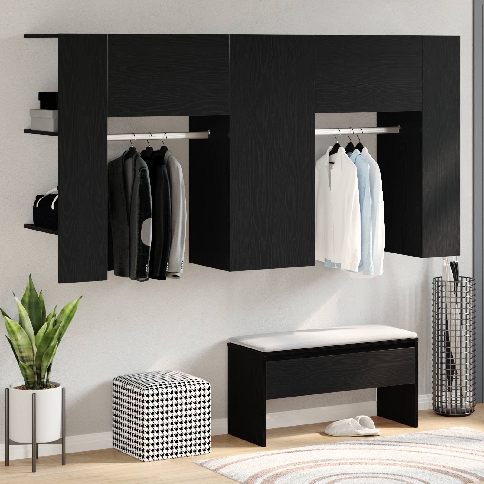 Tieto dvojité skrine do chodby sú parádny mix moderného štýlu a praktického úložiska, ideálne na udržiavanie poriadku vo vašom vstupnom priestore. Vyrobené z kvalitného kompozitného dreva a s moderným matným čiernym dubovým povrchom ponúkajú štýlové úložisko, ktoré sa skvele hodí do súčasných domácich dekorácií, čím robí váš vstup skvelým.