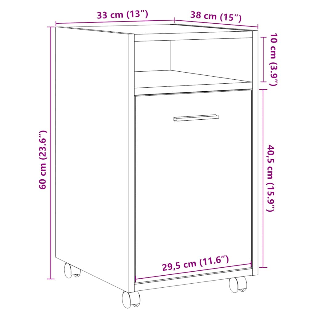 vidaXL Skrinka s kolieskami Dub Artisan 33x38x60 cm Konštrukčné drevo