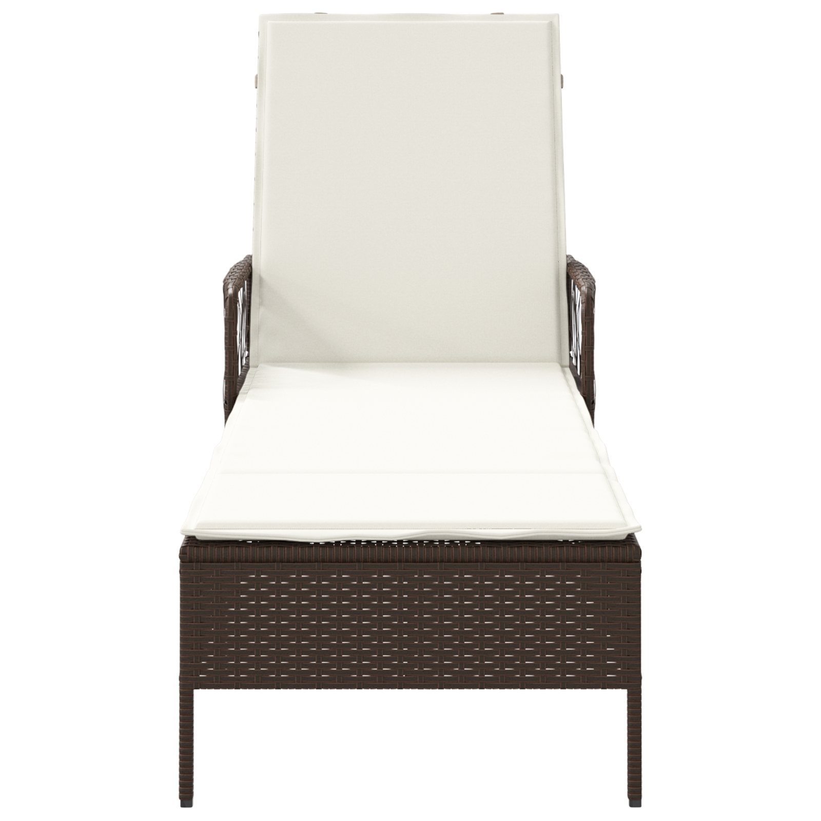vidaXL slnečné lehátko hnedé a krémovo biele PE ratan 157 x 55 x 92 cm