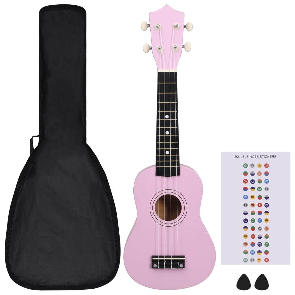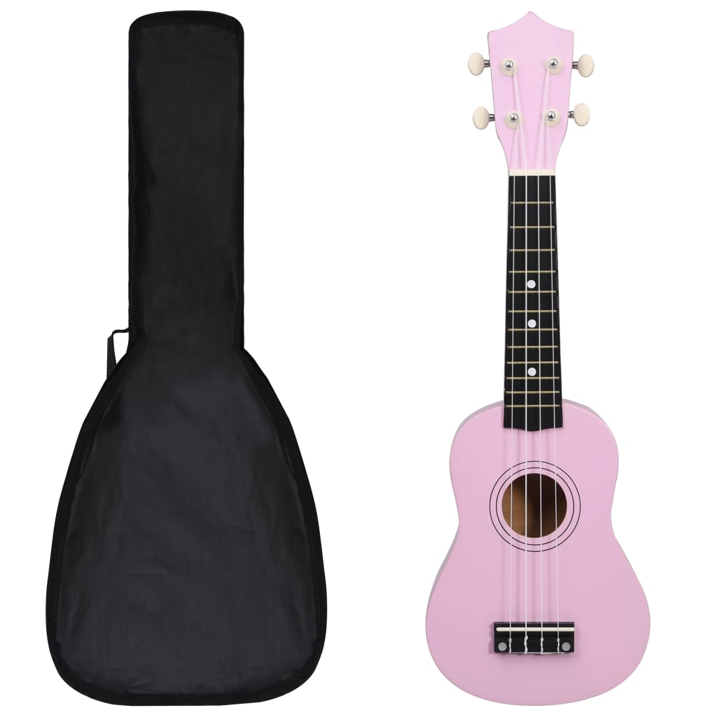 vidaXL Sopránové ukulele s taškou pre deti ružové 21"