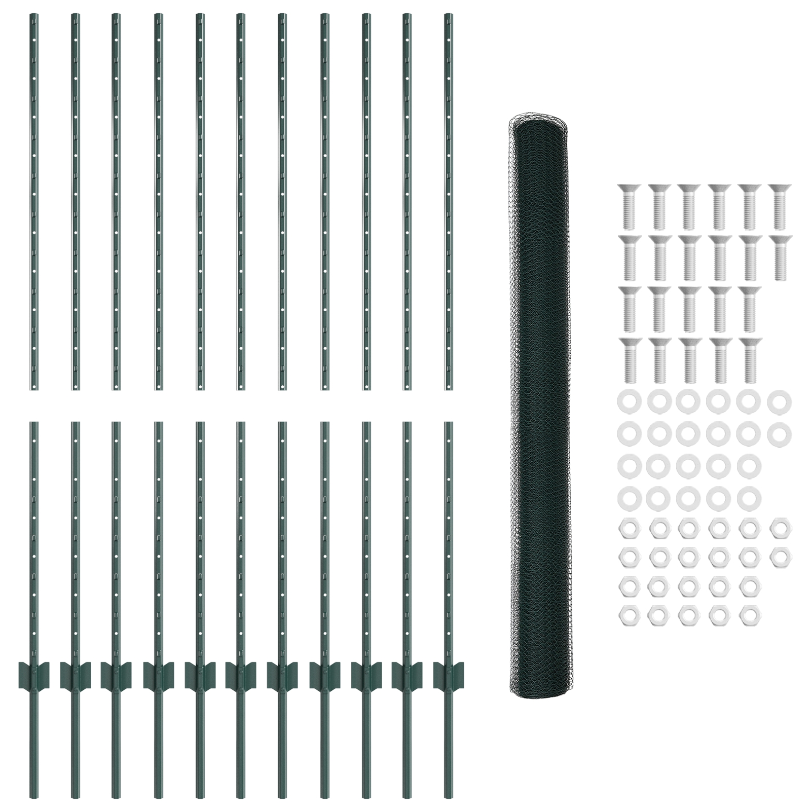 vidaXL Stĺpiky na plot 11 ks U-Channel Zelené 140 cm z ocele, vidaXL Zelený šesťuholníkový plot 1,4×25 m z ocele