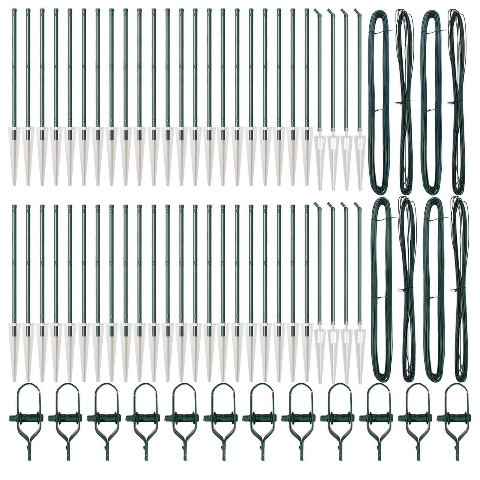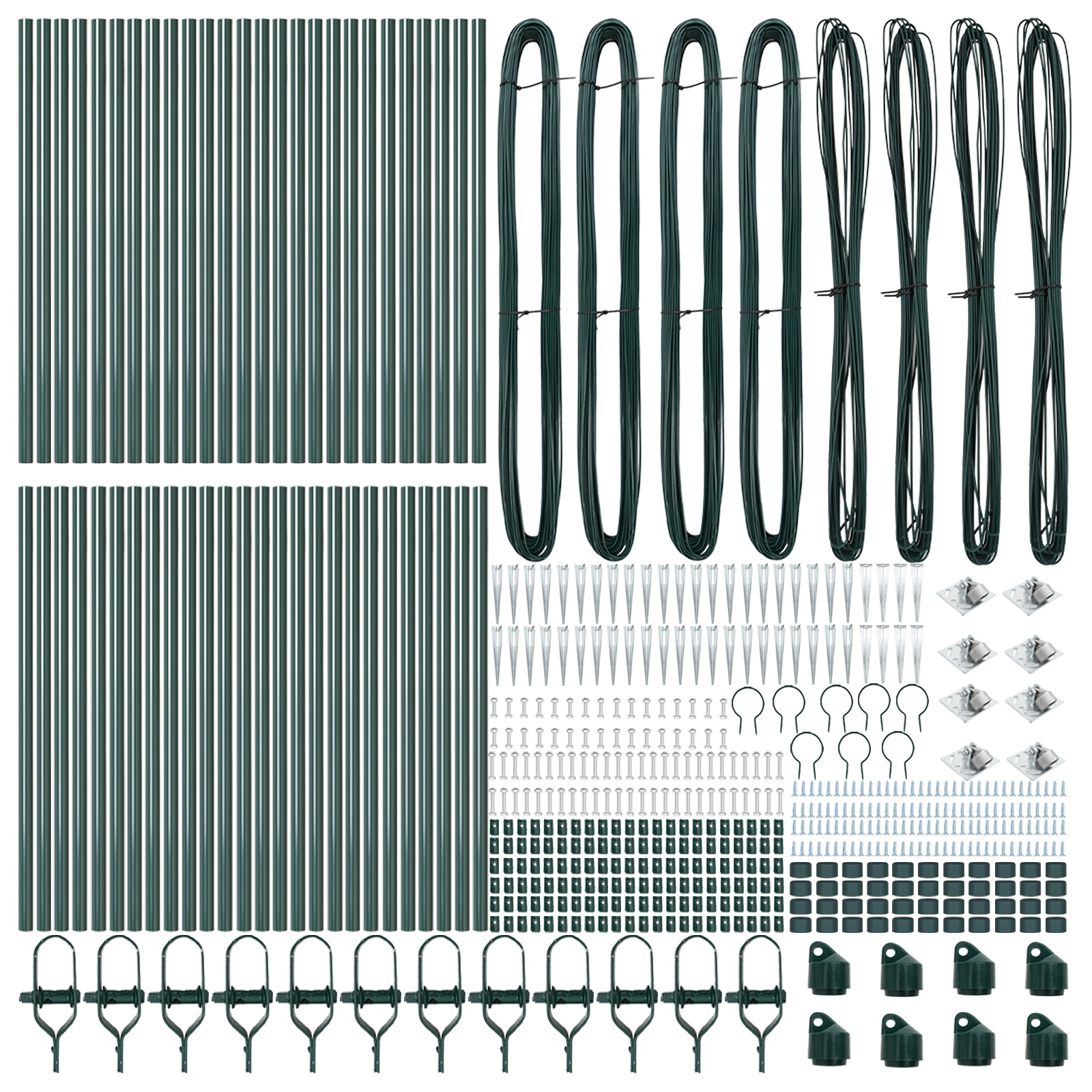 • Kompletná plotová súprava: Táto sada obsahuje všetko potrebné na inštaláciu, vrátane stĺpov, oštepov, drôtu a klipsov, čo ju robí výbornou voľbou pre váš projekt oplotenia.
