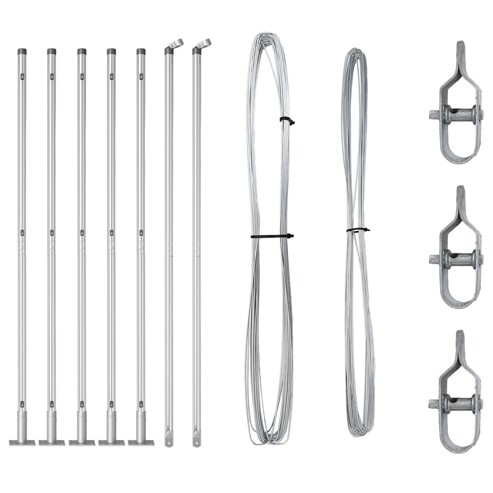 • Jednoduchá inštalácia: Kompletný balík obsahuje rôzne komponenty ako základové dosky a podpory napínacích drôtov pre ľahkú inštaláciu.