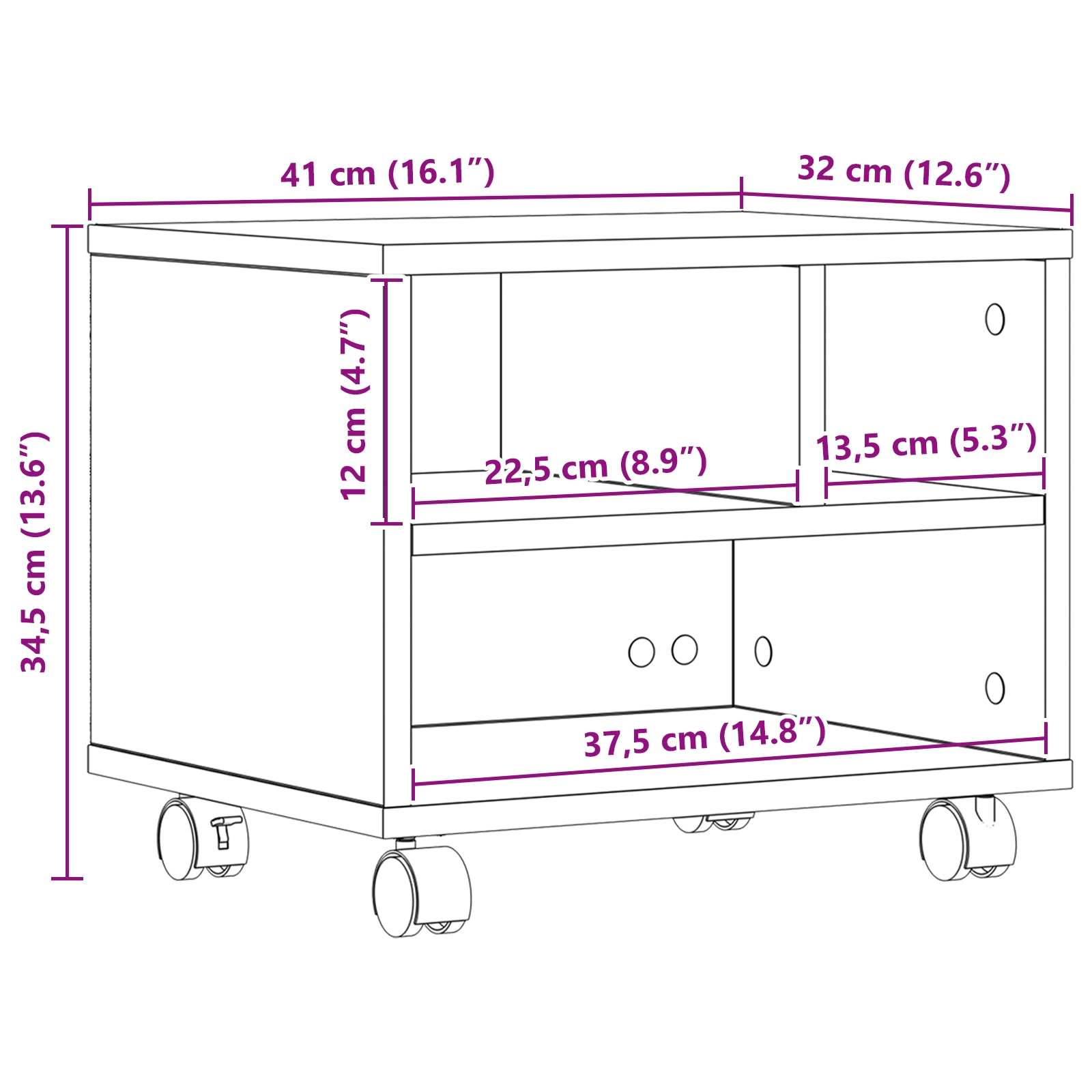 vidaXL Stojan na tlačiareň s kolesami čierny dub 41x32x34.5 cm