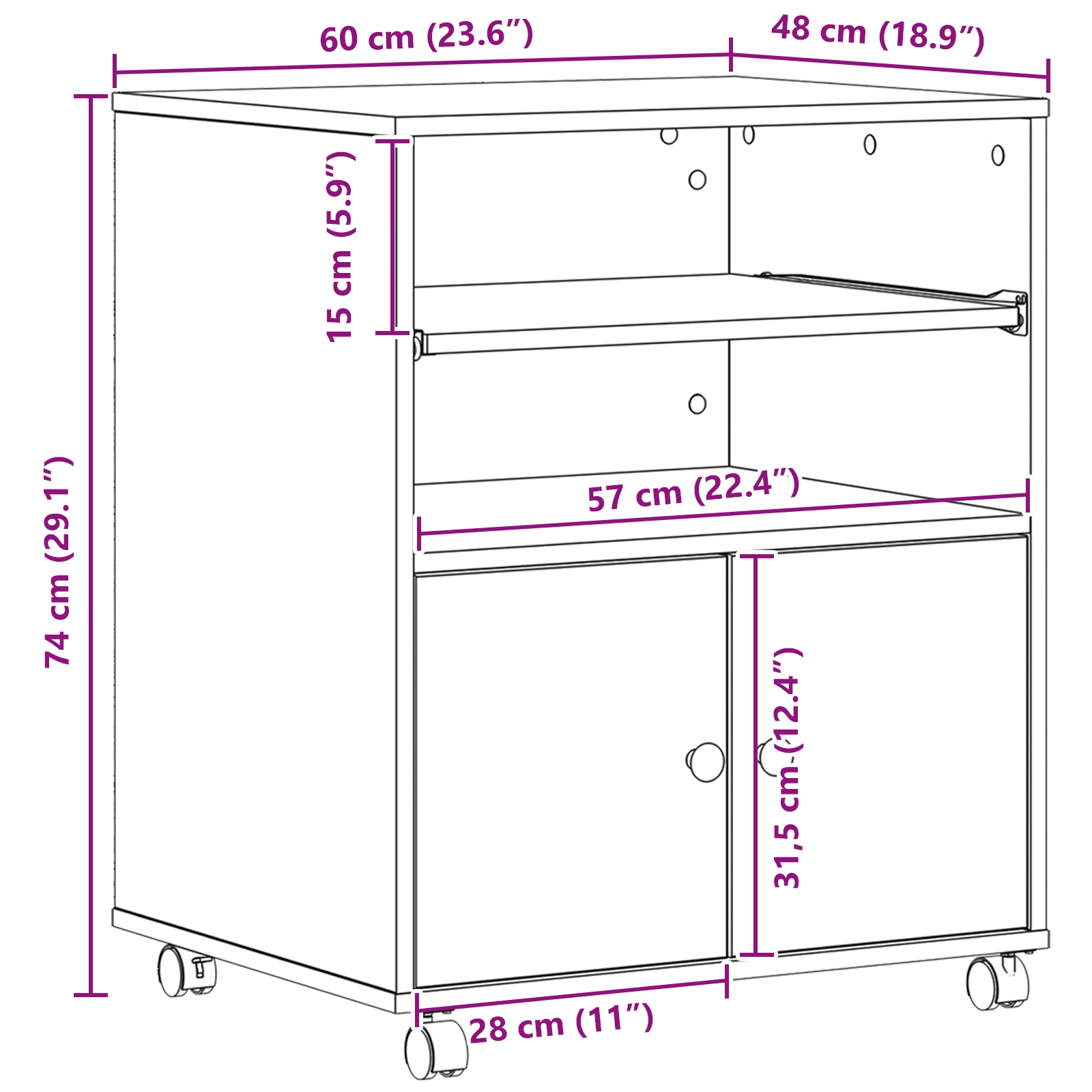 vidaXL Stojan na tlačiareň s kolieskami Artisan Oak 60x48x74 cm