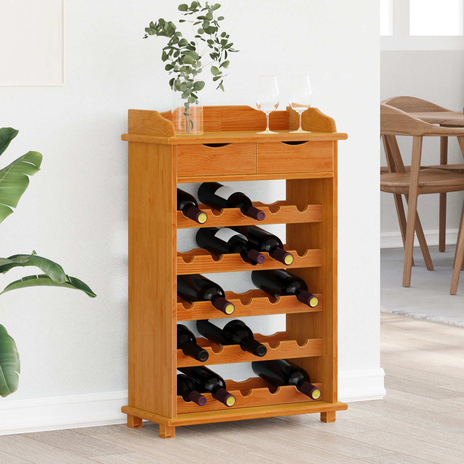 • Robustná konštrukcia: Z masívneho borovicového dreva, tento stojan na víno je navrhnutý tak, aby vydržal, udržiavajúc tvoje víno v bezpečí po dlhé roky. Môžeš sa uvoľniť a vedieť, že tvoja zbierka je v pevnom držiaku, ktorý ostane na svojom mieste.