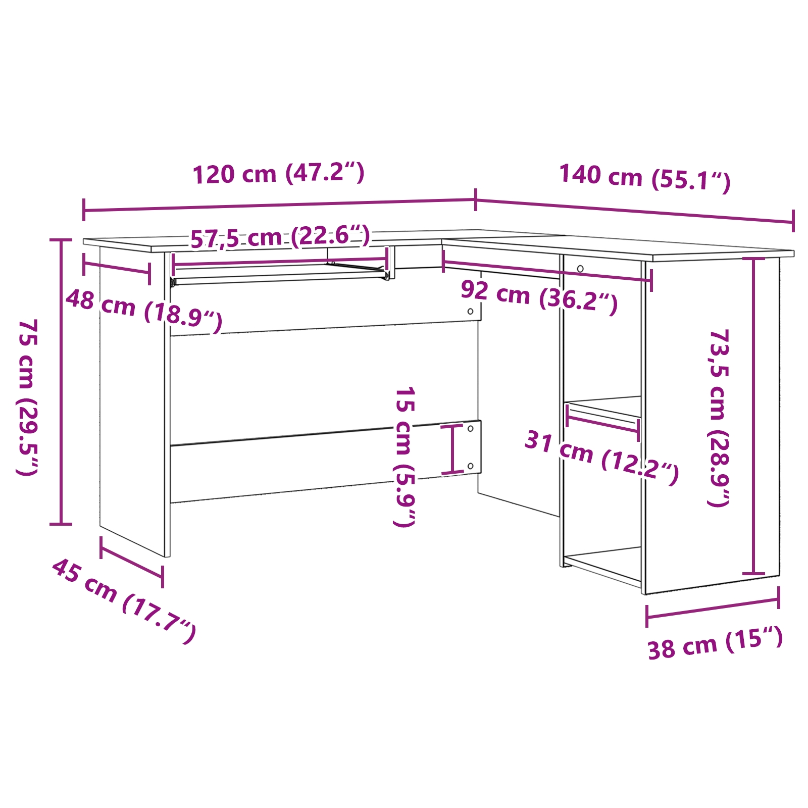 Tento moderný roh stôl je jednoduchý a praktický, takže je ideálny do domácich kancelárií, študovní alebo písacích plôch. Elegantný čierny dub mu dodáva šmrnc a perfektne zapadne do tvojho interiéru, pričom ti poskytne dostatok priestoru na všetky tvoje úlohy.