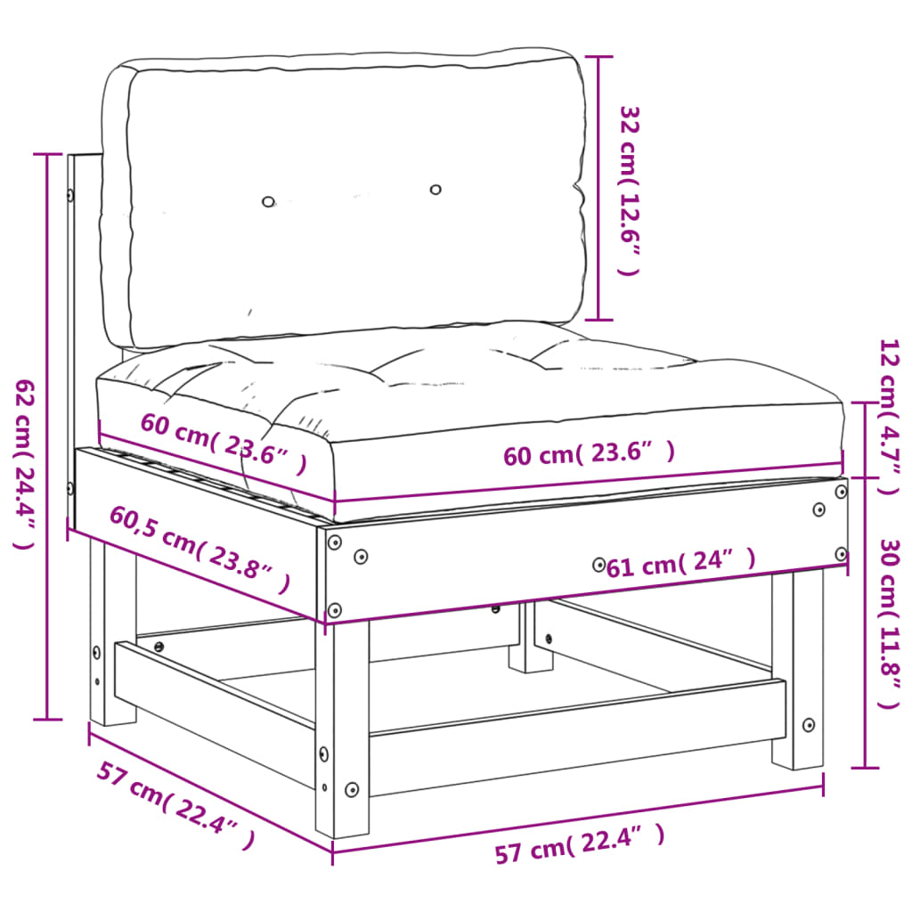 vidaXL Stredová pohovka s podložkami medovo-hnedá borovicový masív
