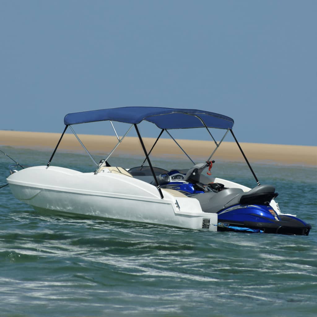 Táto kvalitná strieška Bimini má tvarovaný rám s 3 oblúkmi, a preto predstavuje efektívny spôsob ako zabezpečiť ochranu pred priamym slnkom a nepriaznivým počasím v podobe krúpov či dažďa.