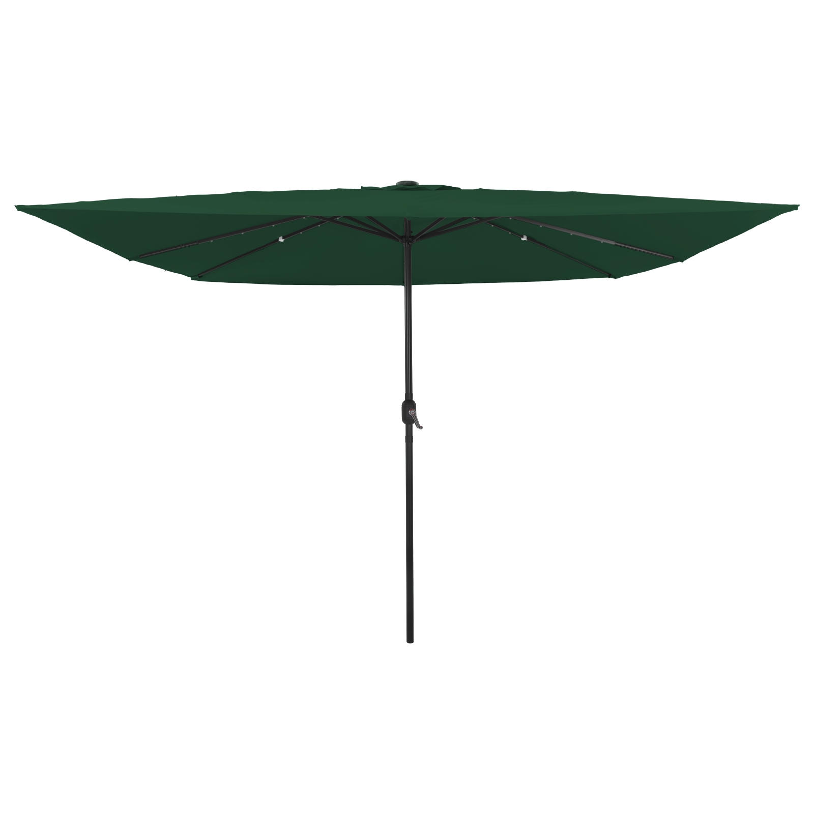 vidaXL Štvorcový záhradný slnečník s LED osvetlením 295×245 cm Zelený