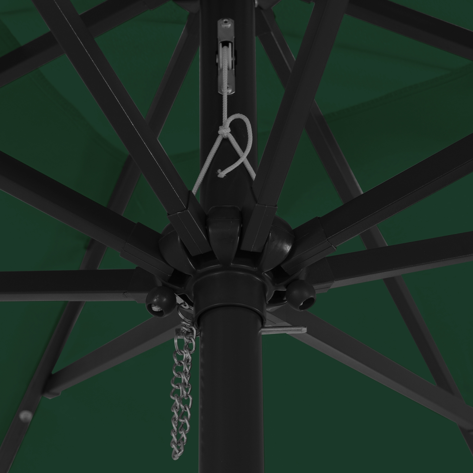 Tento slnečník má výšku 249 cm a poskytuje skvelý tieň na vonkajších plochách. Perfektný do záhrad alebo na terasy. Jeho moderný dizajn v živých zelených farbách sa hodí do rôznych vonkajších štýlov a vytvára príjemnú atmosféru na rodinné stretnutia alebo oddych.