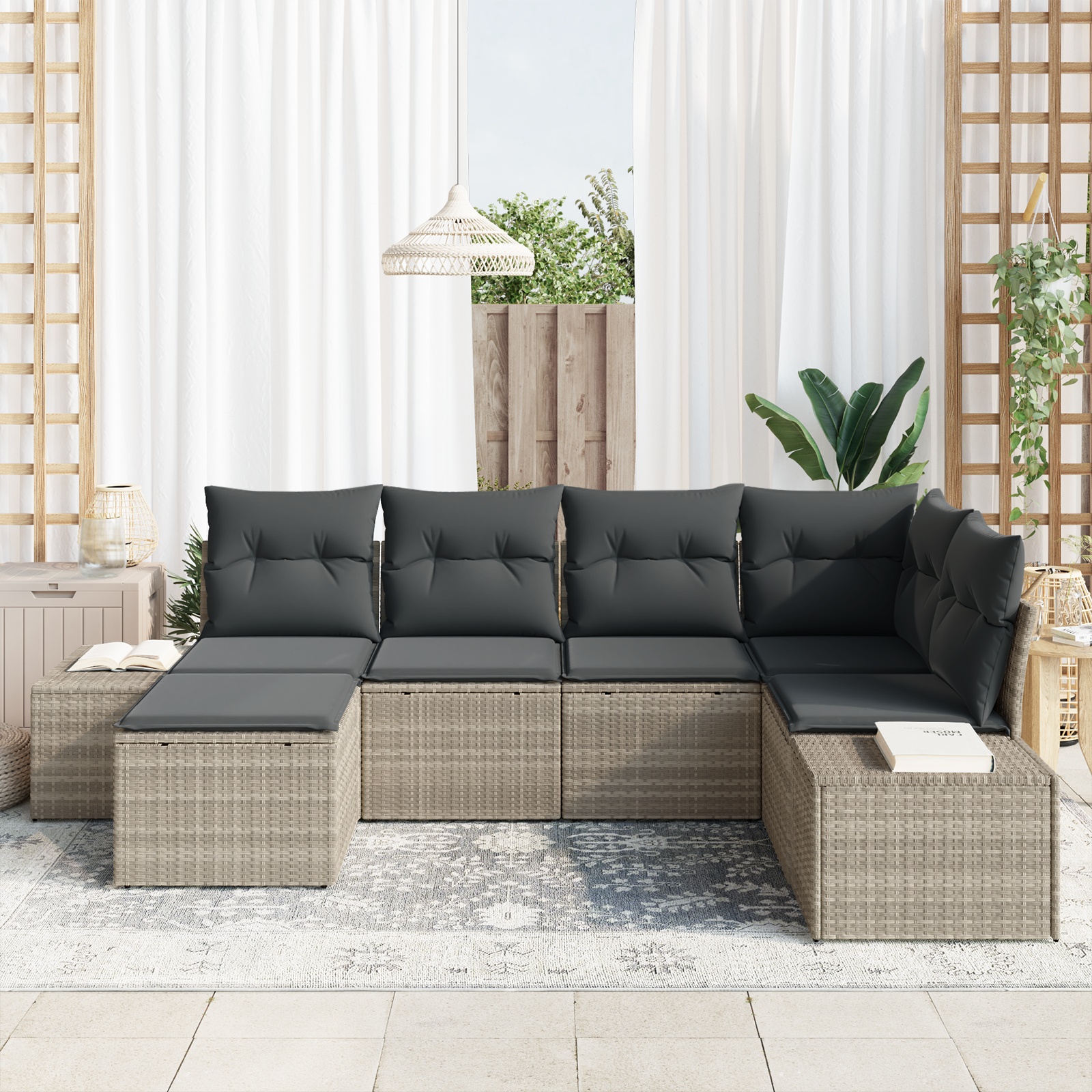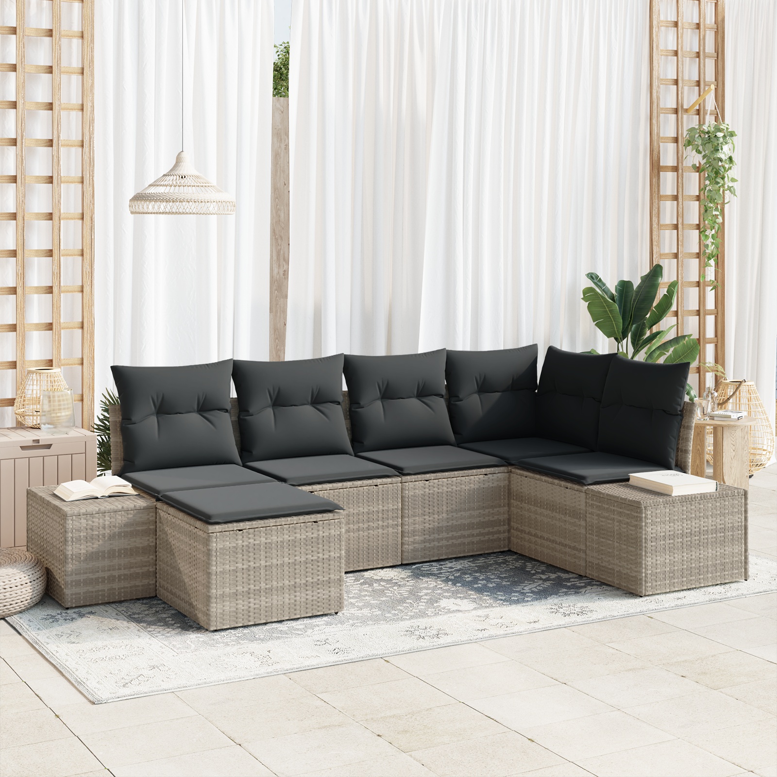 vidaXL Súbor záhradných pohoviek s 6 kusmi a vankúšmi v svetlosivej farbe z poly ratanu