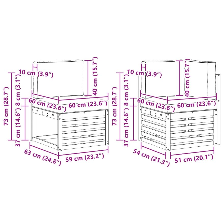 • 2 x rohová pohovka: 63 x 63 x 73 cm (D x Š x V)