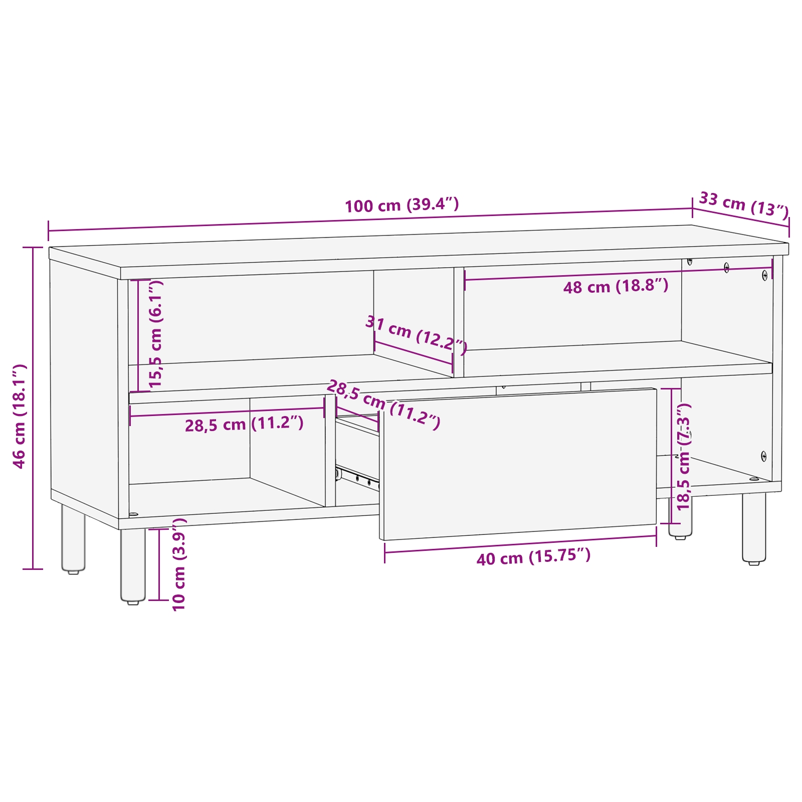 vidaXL Televízny stolík 100x33,5x46 cm z masívneho akáciového dreva