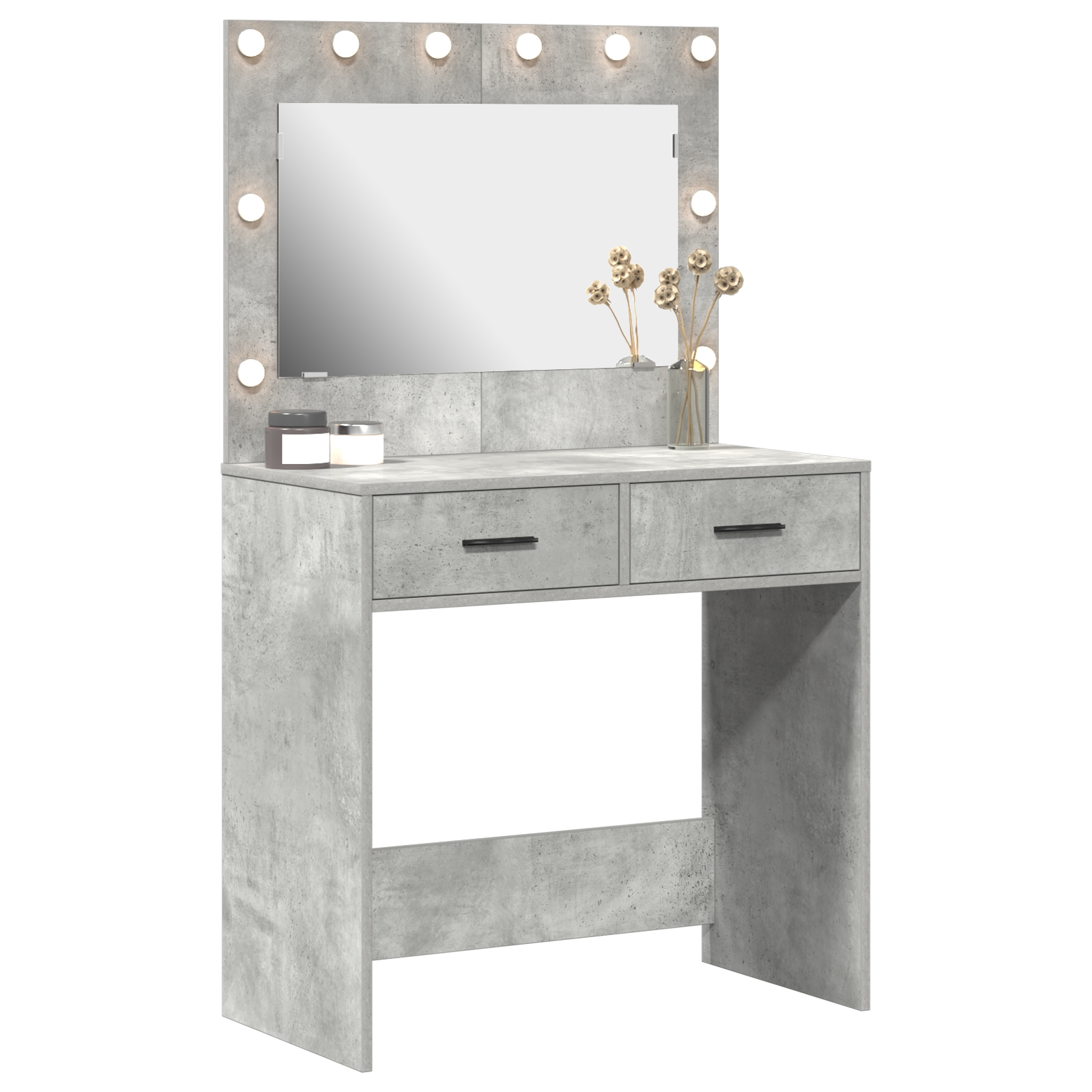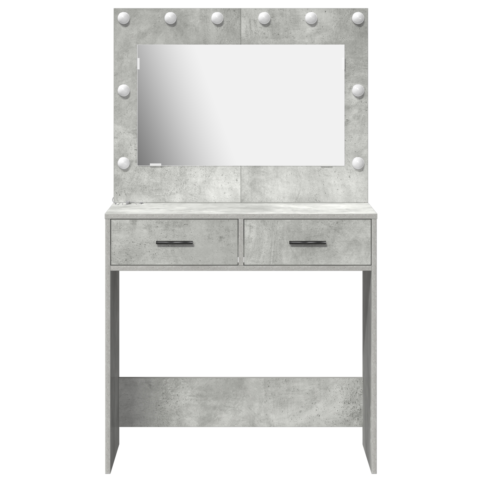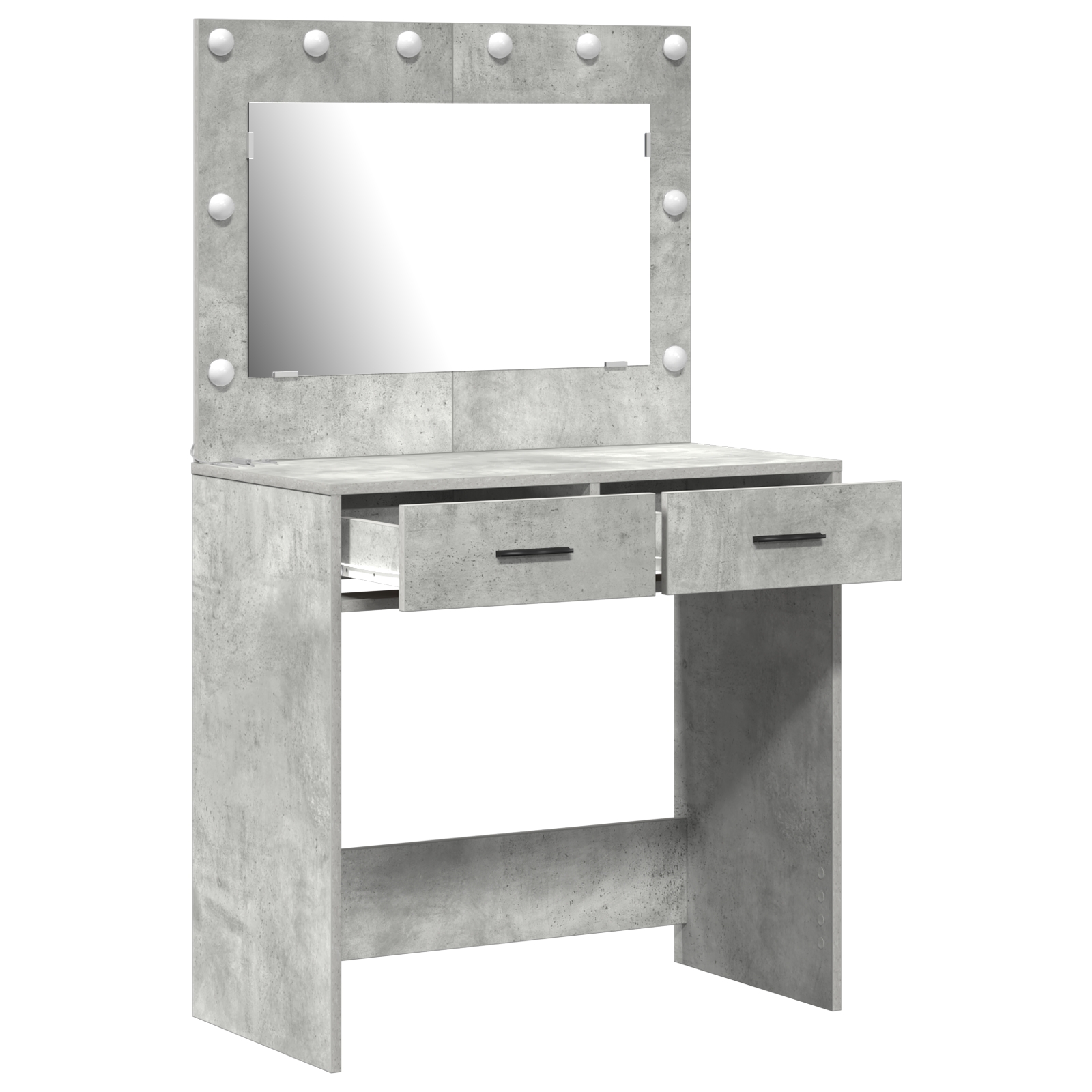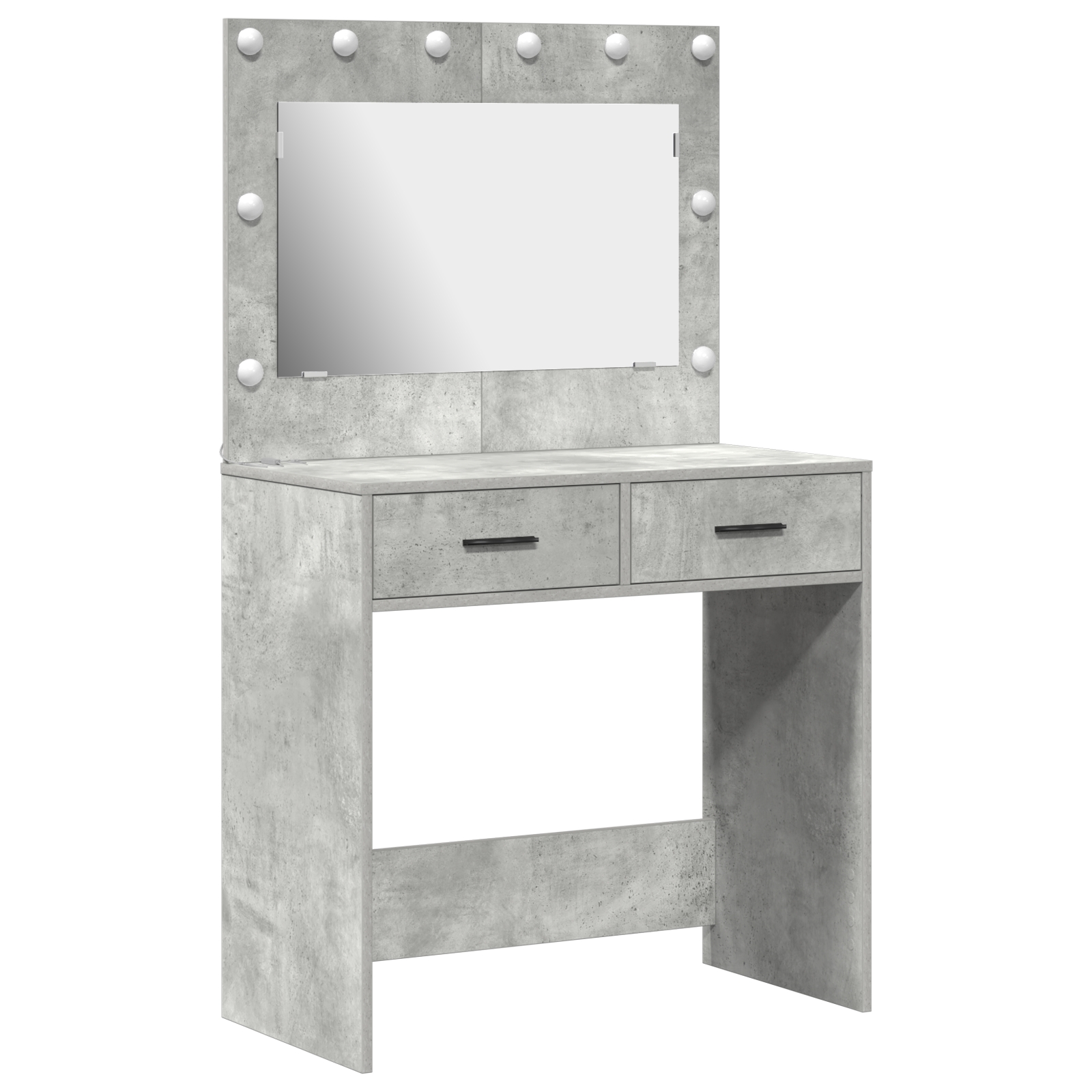 Tento betónový šedý toaletný stolík posúva tvoje úpravy na novú úroveň. Elegantný dizajn a praktické funkcie robia z neho ideálny kúsok do každej moderne zariadenej spálne. S pekným textúrovaným povrchom je skvelý na líčenie alebo prípravu.