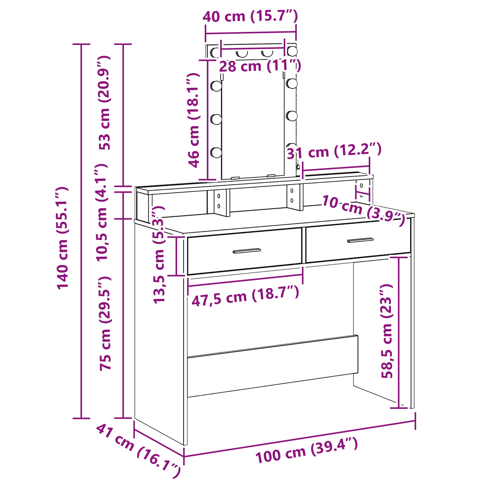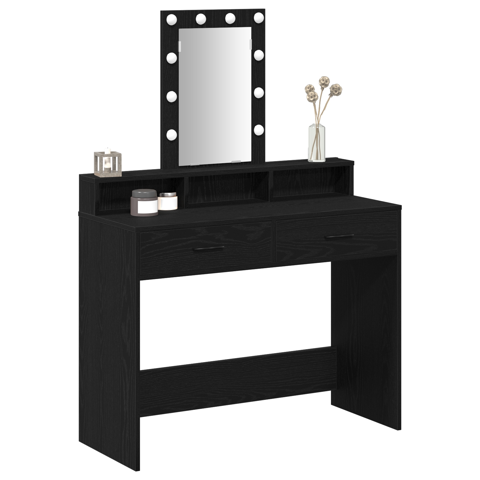 vidaXL Toaletný stolík s LED svetlami, čierny dub, 100x41x140 cm