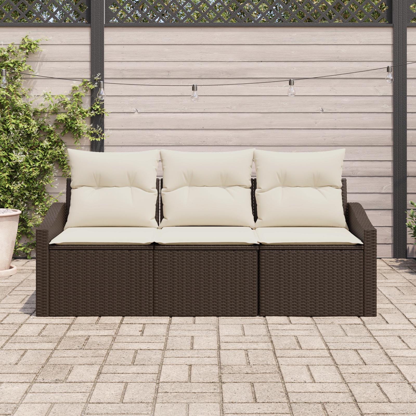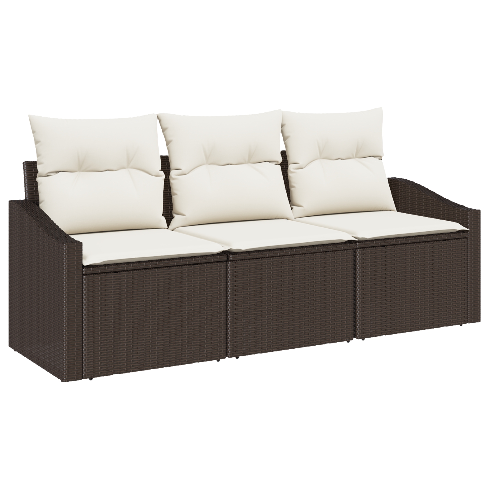 vidaXL Trojdielna záhradná pohovková súprava s vankúšmi Hnedá Poly ratan