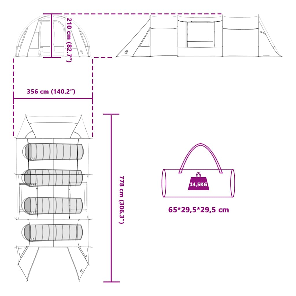 Tento moderný tunelový stan je super doplnok na každé vonkajšie dobrodružstvo, navrhnutý tak, aby ti poskytol pohodlie a funkčnosť po celý čas kempovania v lete. Vyrobený s priestranným interiérom a čistými líniami, ponúka ergonomické riešenia pre viacdňové výlety. Tento stan je z 185T polyesteru s PU povrchom, čo zabezpečuje, že nech ťa počasie prekvapí, ty zostaneš v suchu a bezpečí. Či už v záhrade, na terase alebo na kempovacom mieste, tento tunelový stan ti dá pocit skvelého vonkajšieho zážitku.