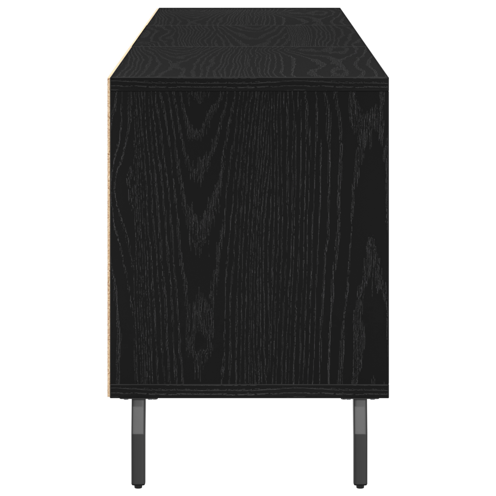 • Štýlový vzhľad: Matný čierny dubový povrch dodáva tvojmu interiéru elegantný nádych, robí tento TV stojan nielen praktickým, ale aj skutočným stredobodom pozornosti vo tvojej obývačke.