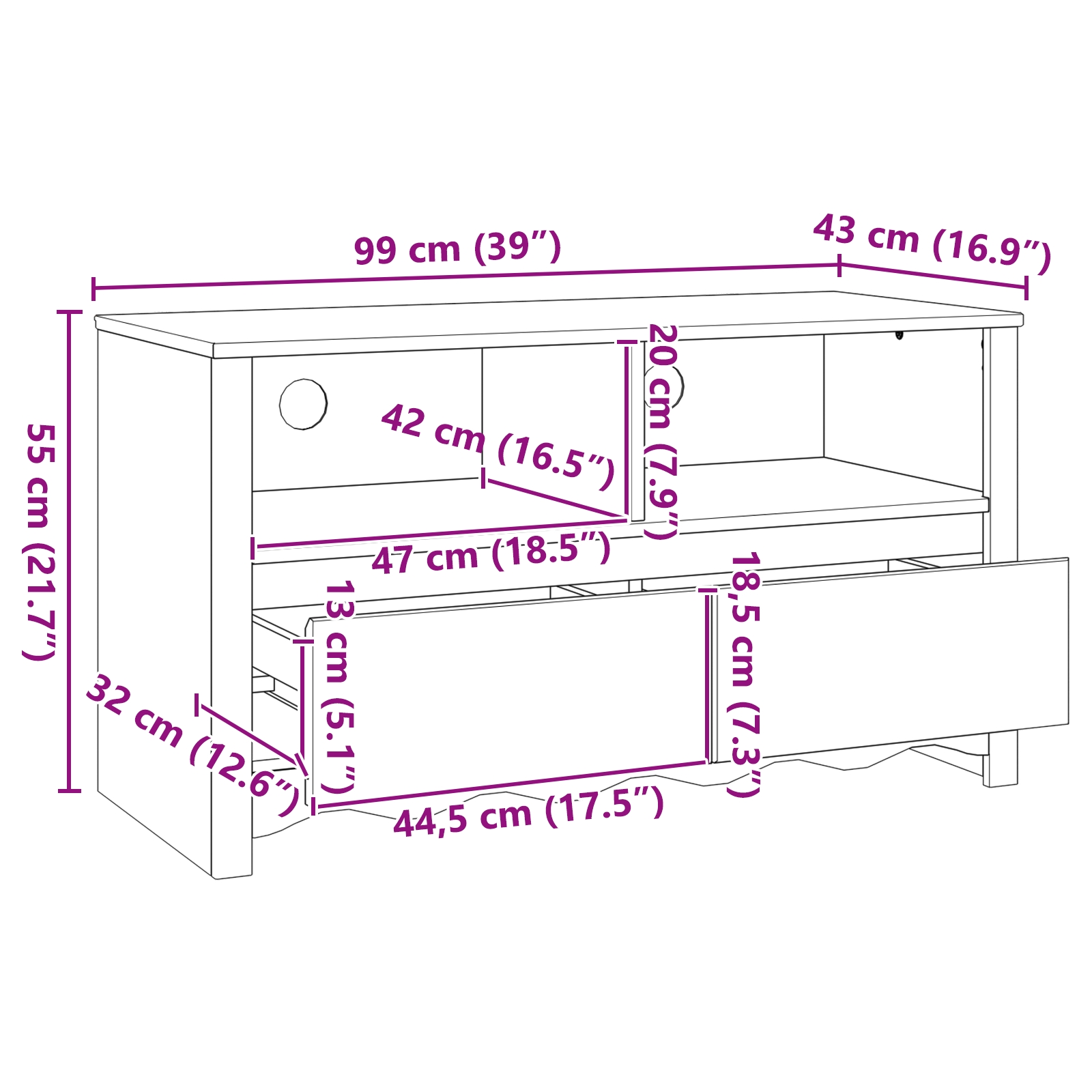 • Dimensions: 99 x 43 x 55 cm (L x W x H)