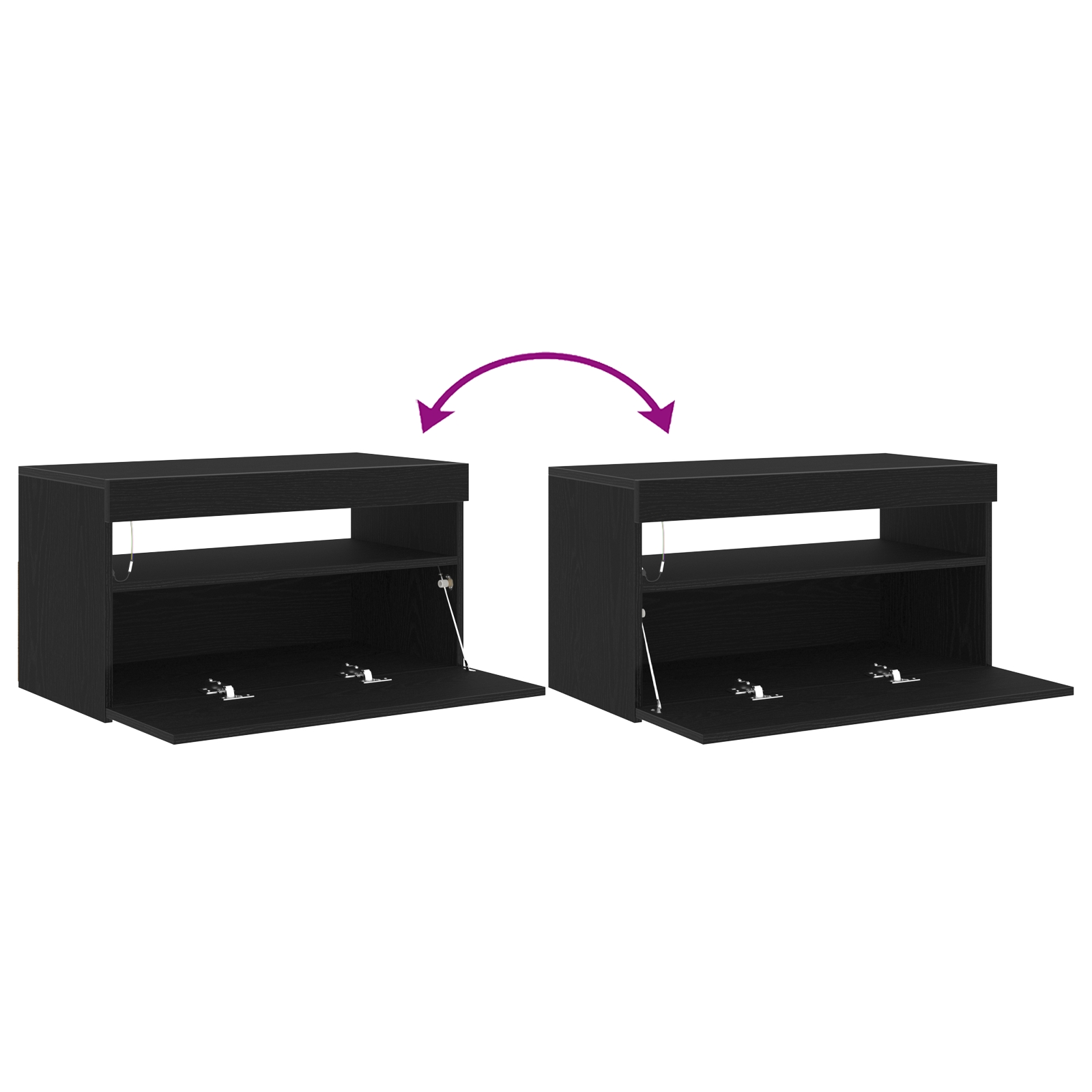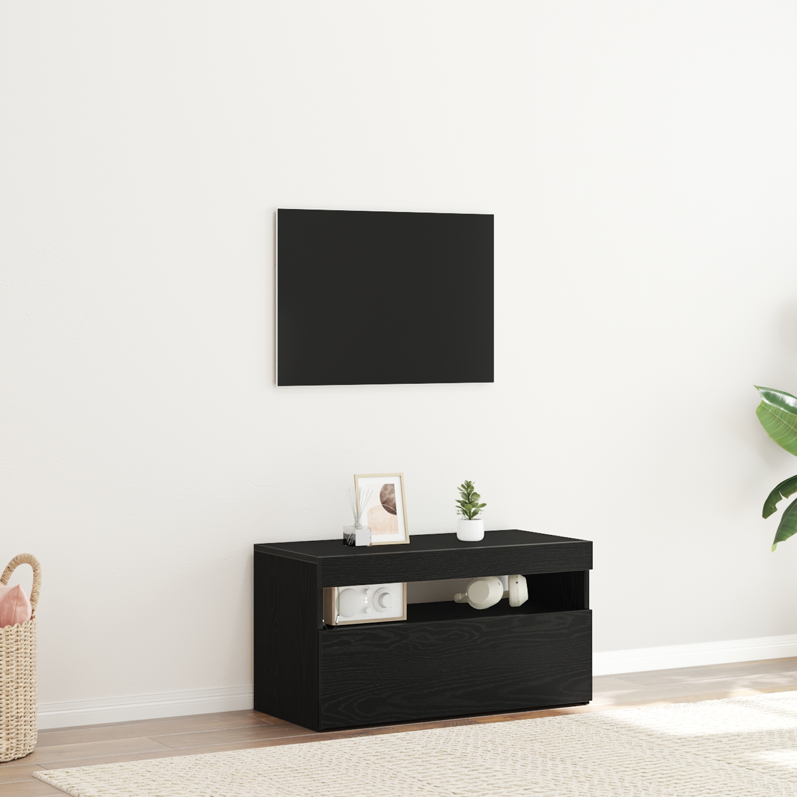 vidaXL TV skrinka s LED svetlom, čierna, dubová, 75x35x40 cm, kompozitné drevo