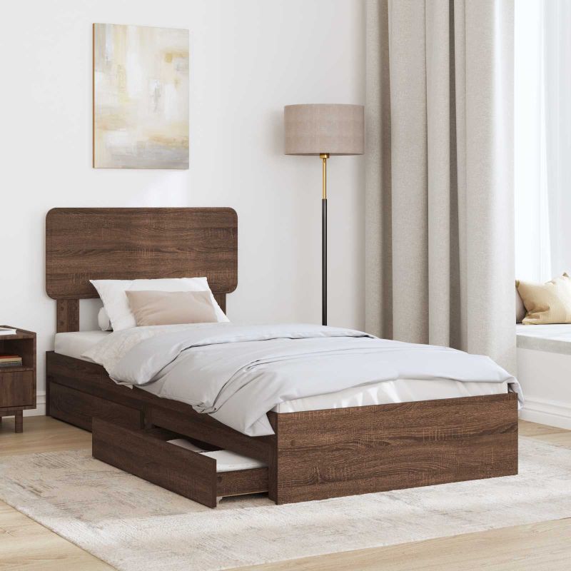 vidaXL Úložná posteľ Hnedý dub 100 x 200 cm Kompozitné drevo vidaXL Úložná posteľ Hnedý dub 100 x 200 cm Kompozitné drevo