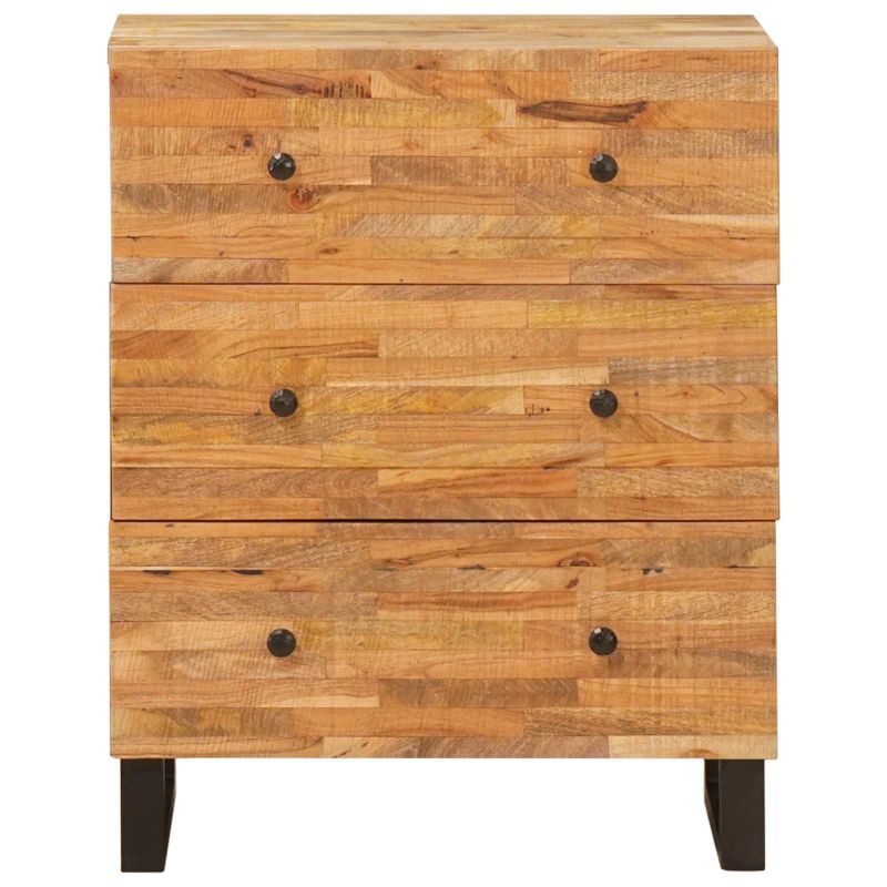 Tento úložný bočný panel z masívneho mangového dreva je kombinácia formy a funkcie, bez námahy zapadá do moderného prostredia vďaka elegantnému a minimalistickému dizajnu. So zásuvkami na odkladanie je ideálny na usporiadanie vecí v spálni či obývačke. Jeho univerzálny vzhľad ponúka jednoduchosť a štýl, skvele sa hodí do priestorov, kde chcete prakticky a štýlovo organizovať.