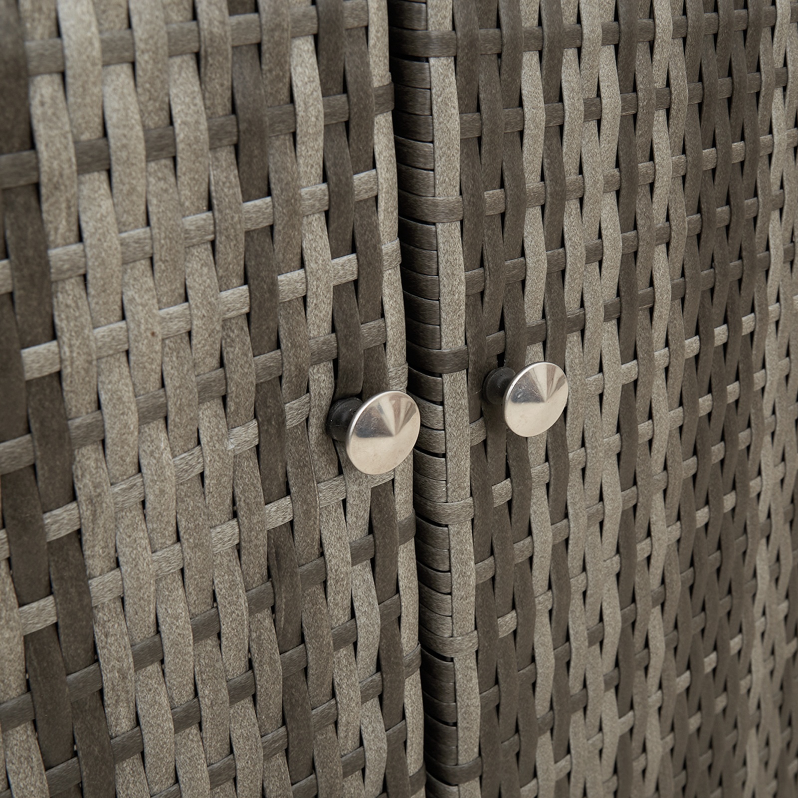 • Odolný ratanový materiál: Tento kabinet je vyrobený z kvalitného prírodného ratanu a vodoodolnej ocele, odoláva vnútorným aj vonkajším podmienkam, zaručuje dlhú životnosť aj pri bežnom používaní.