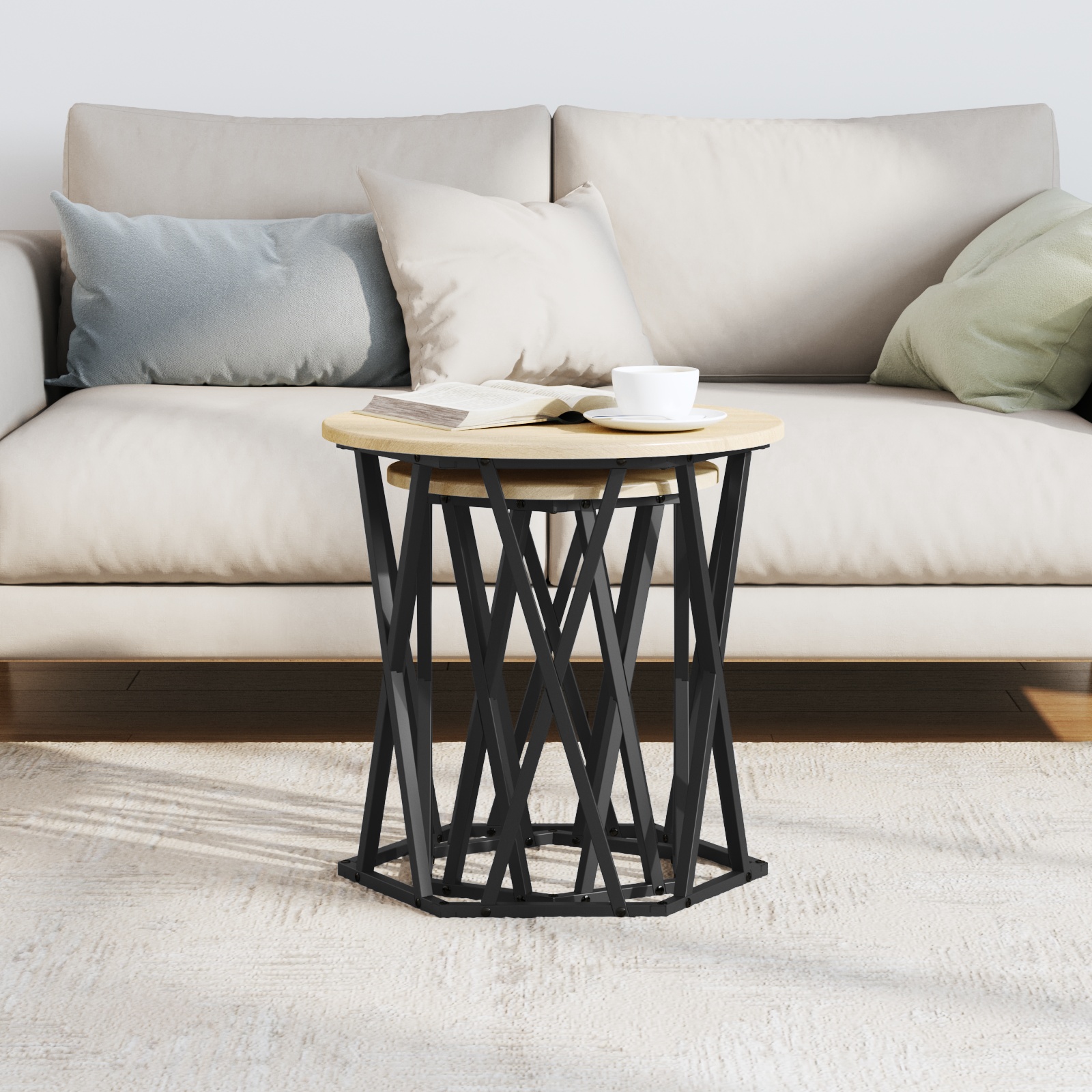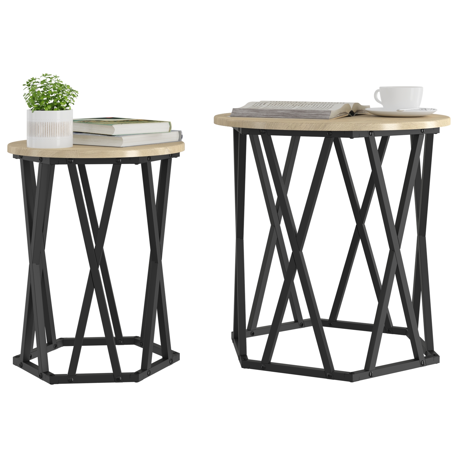 Tento konferenčný stolík je skvelá kombinácia moderného dizajnu a praktickosti, ktorý sa bez problémov hodí do dnešných obývačiek alebo pracovísk. Jeho šesťuholníkový tvar a povrch z duba Sonoma poskytuje ideálnu plochu na kávu a dodáva priestoru veľa charakteru, čím sa stáva centrom pre malé stretnutia alebo väčšie oslavy.