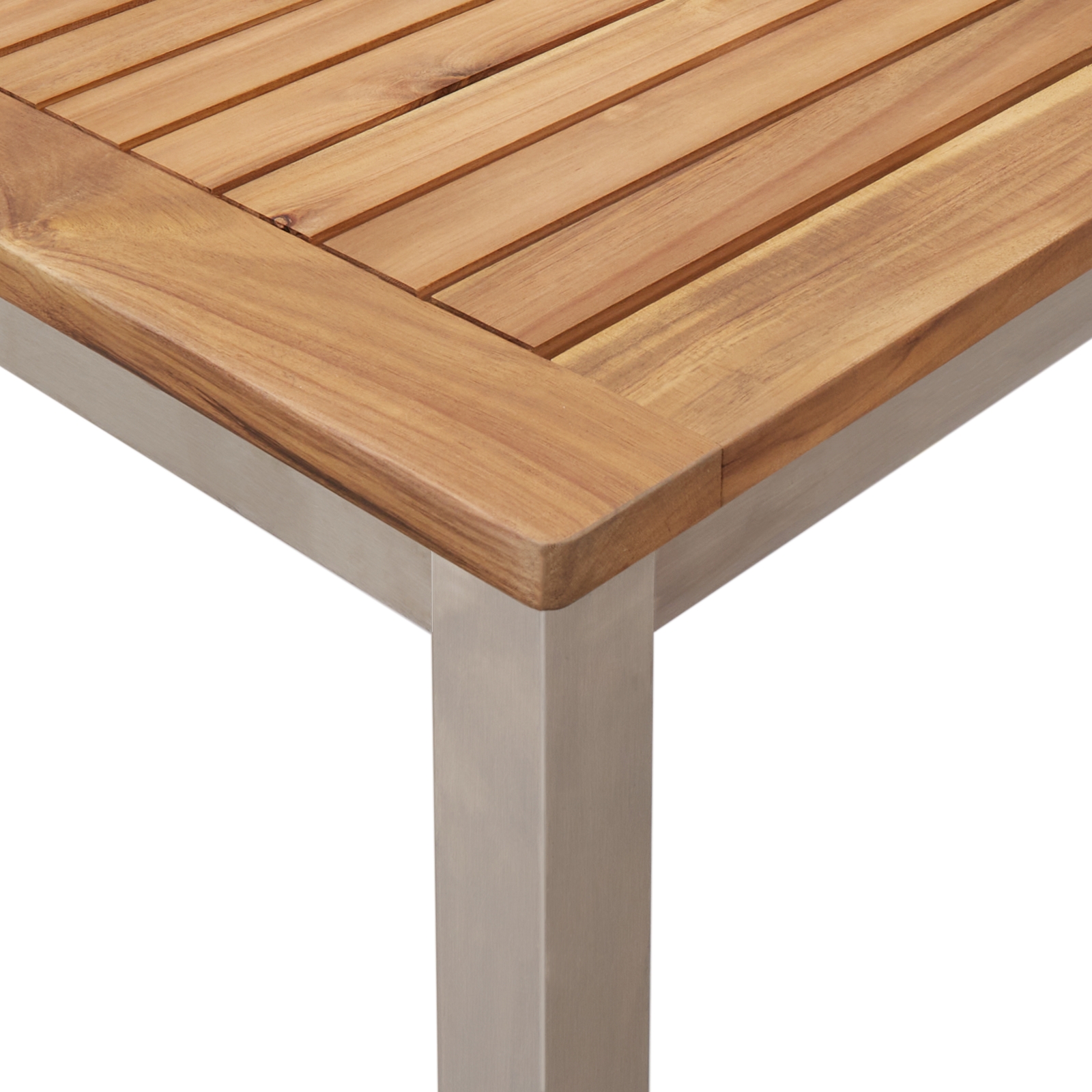Vyrobené z kvalitných materiálov, tento stôl pohodlne usadí šesť ľudí. Kombinácia teaku a nehrdzavejúcej ocele zabezpečuje dlhú životnosť a vylepšuje atmosféru tvojho vonkajšieho priestoru.