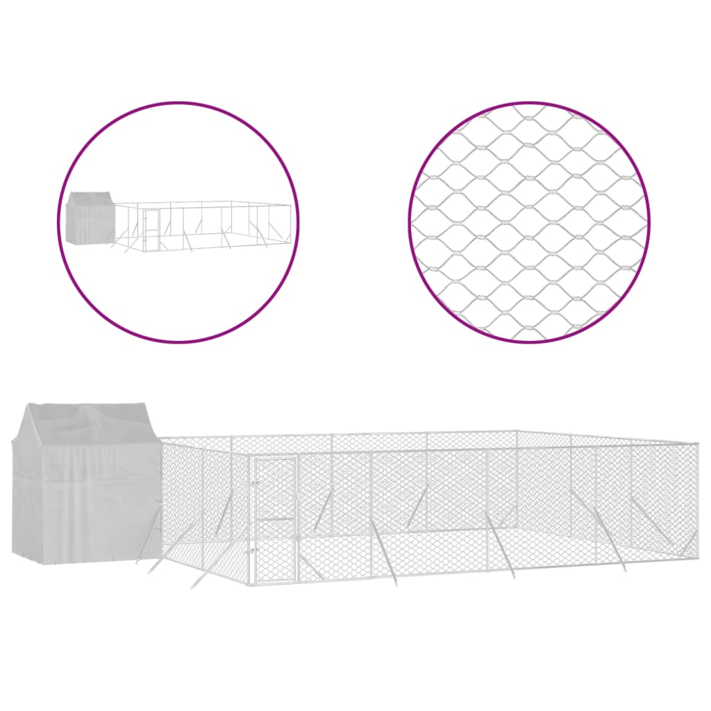 vidaXL Vonkajší koterec pre psov so strechou strieborný 10x6x2,5m oceľ