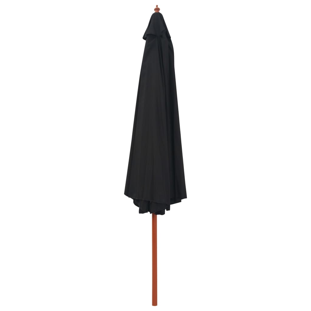 vidaXL Vonkajší slnečník s drevenou tyčou 350 cm, čierny