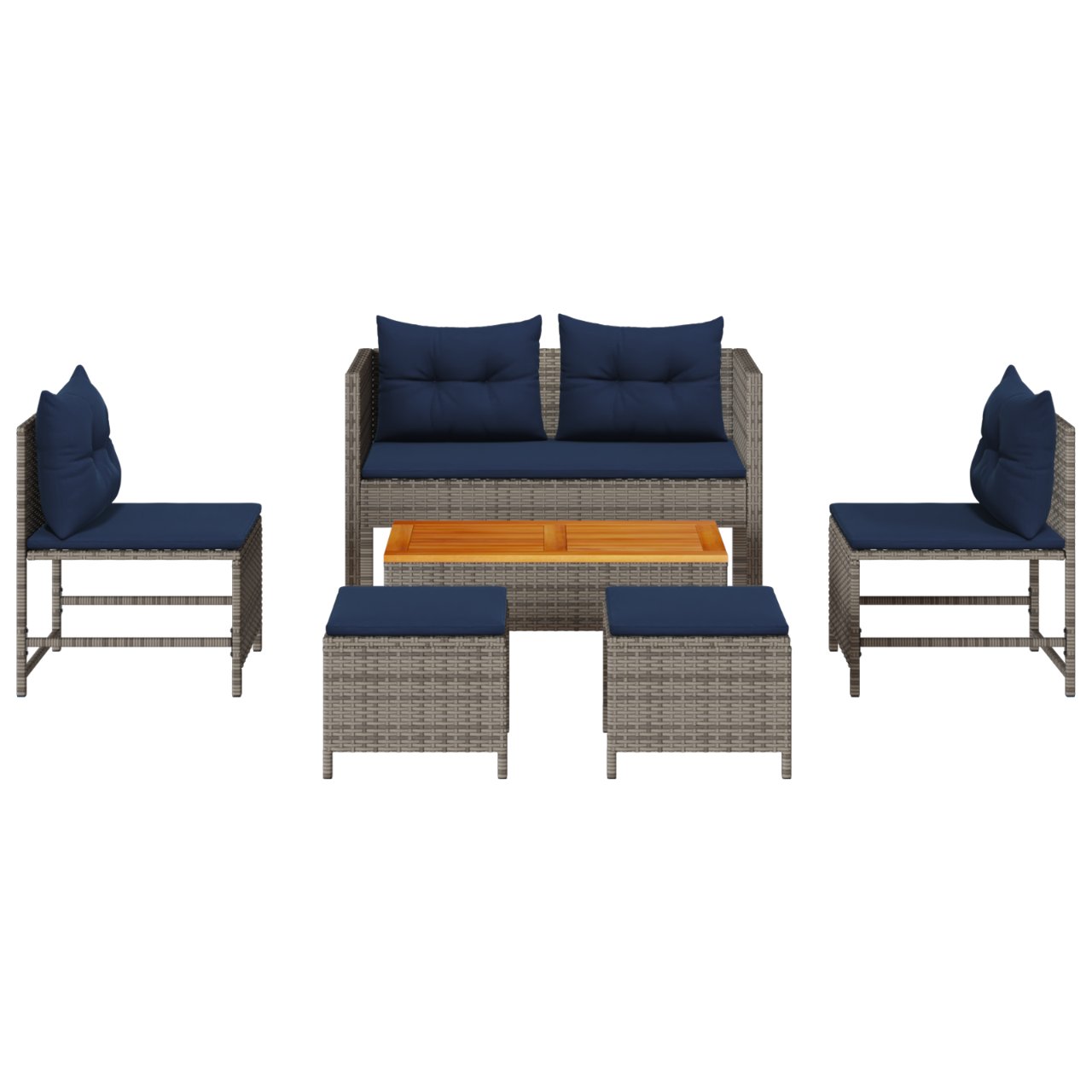 vidaXL vonkajšia pohovka Šedá a námornícky modrá Ratan s kovovým rámom