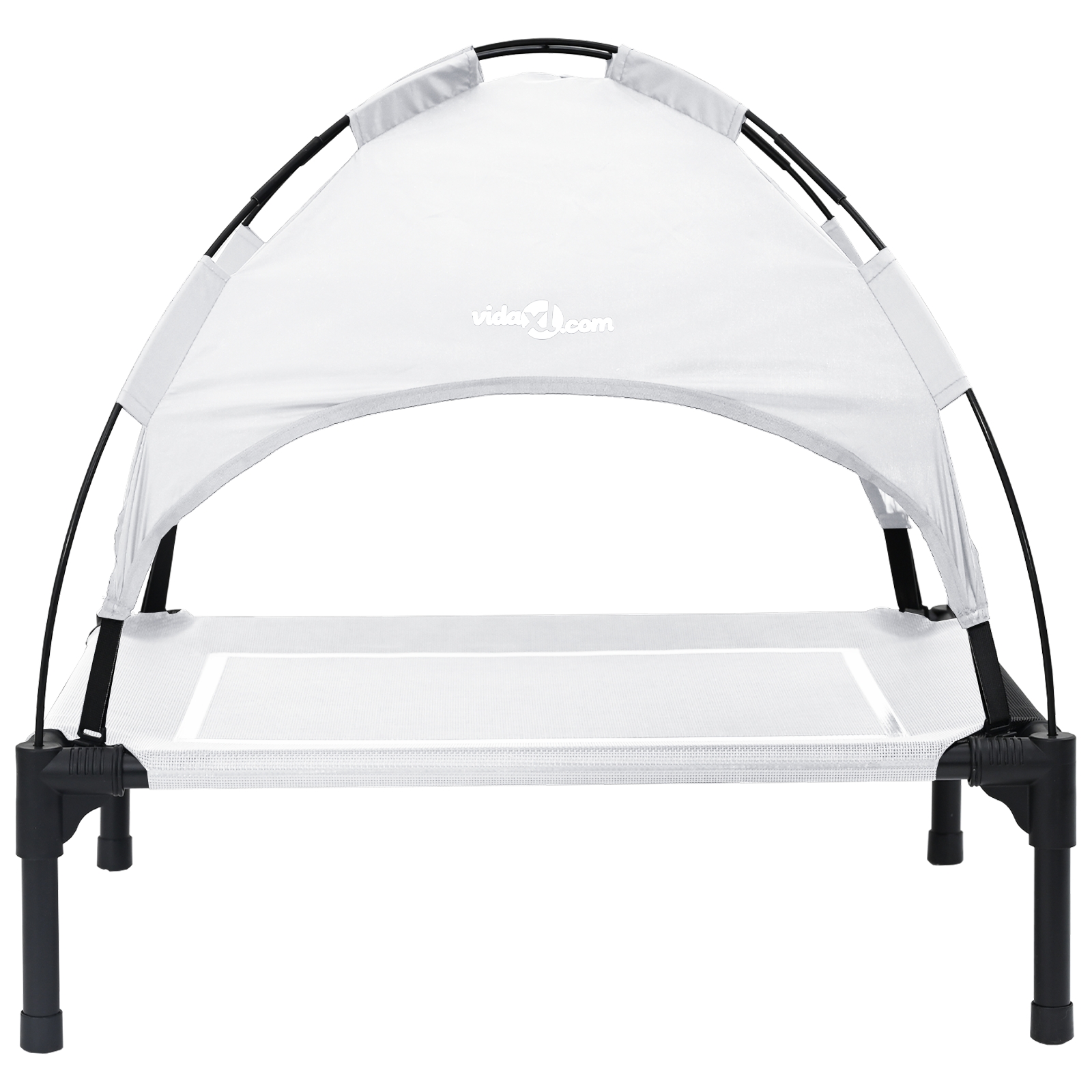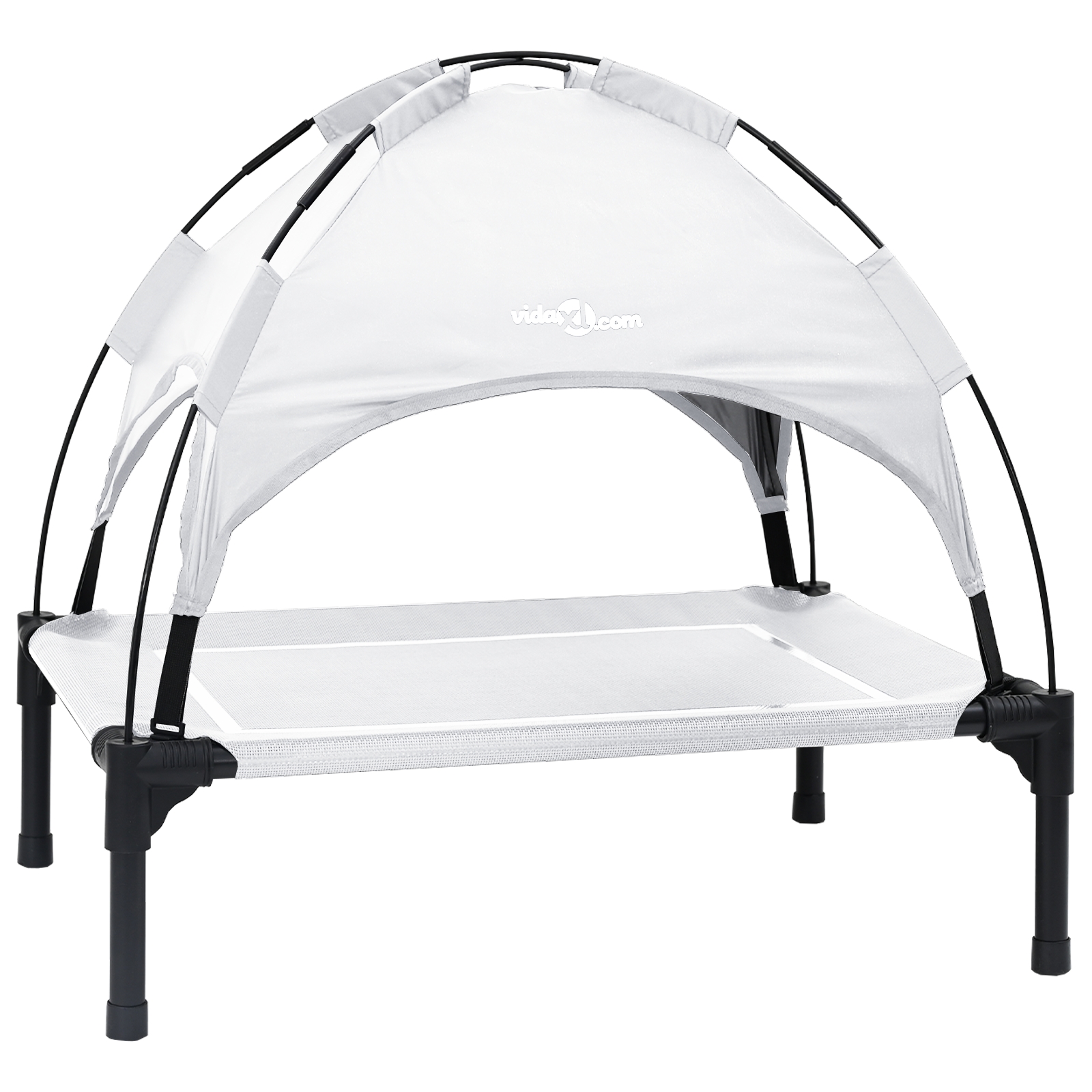vidaXL Vyvýšená posteľ pre psa s odnímateľnou strechou Strieborná šedá Oceľ