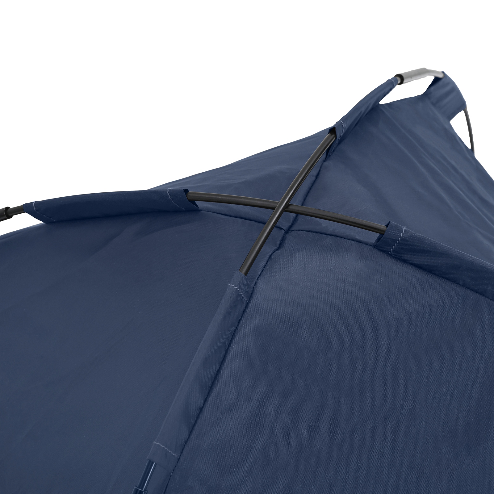 vidaXL vyvýšená posteľ pre psov s odnímateľnou strechou Námornícka modrá S Kov