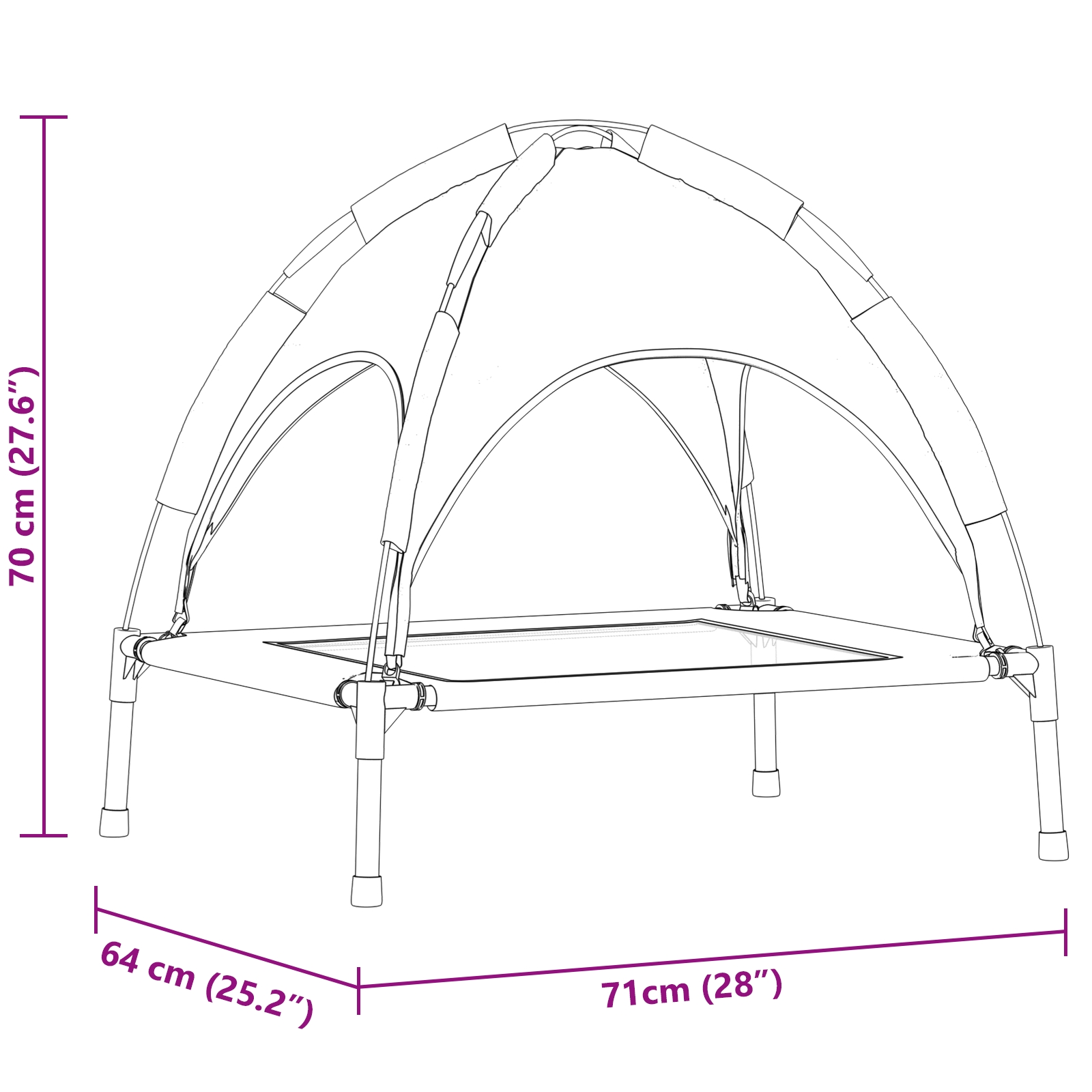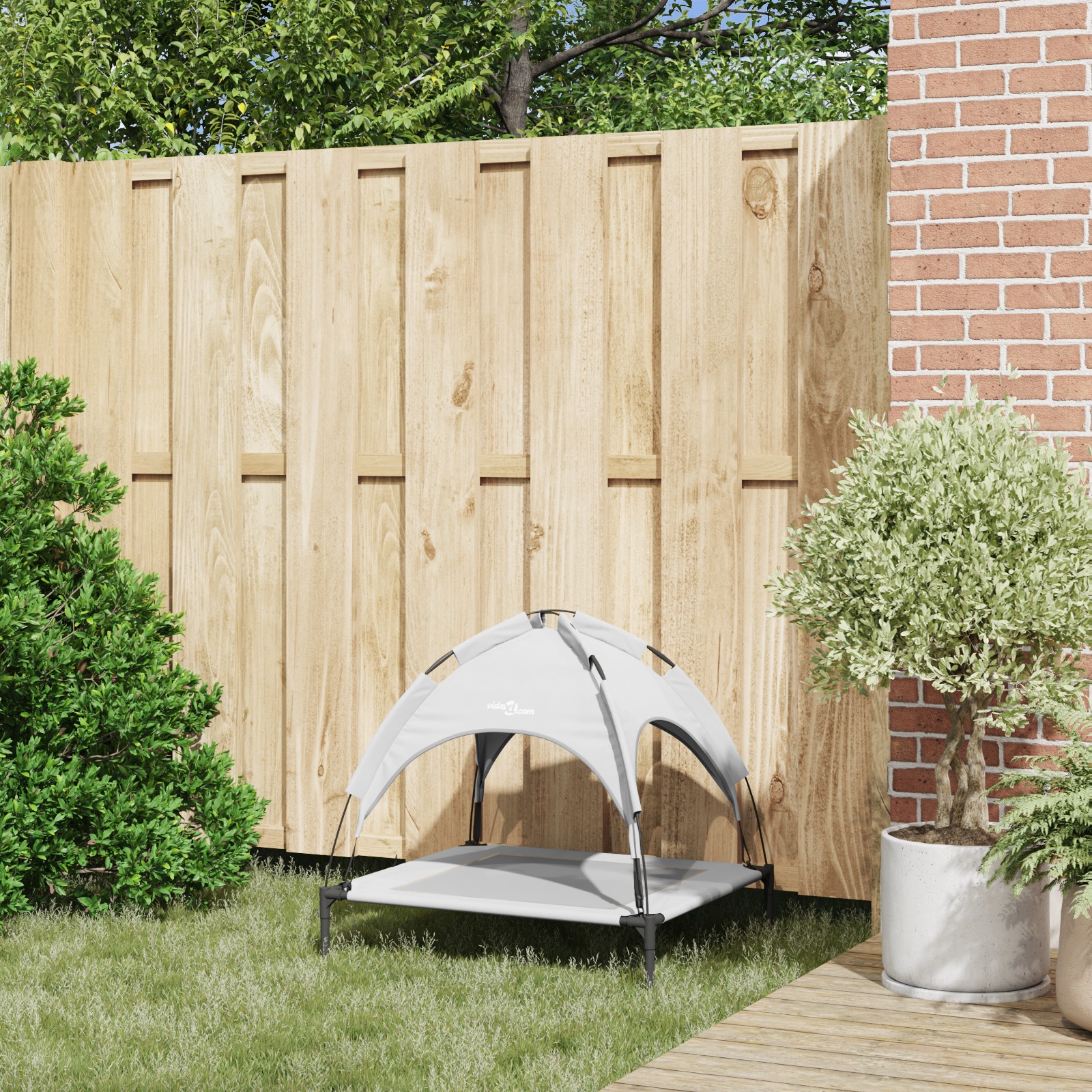 vidaXL Vyvýšená posteľ pre psov s odnímateľnou strechou strieborná šedá M oceľ