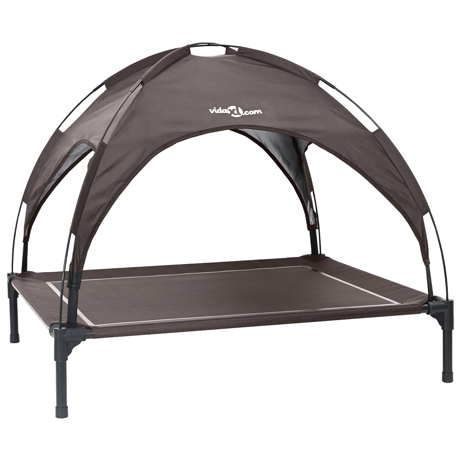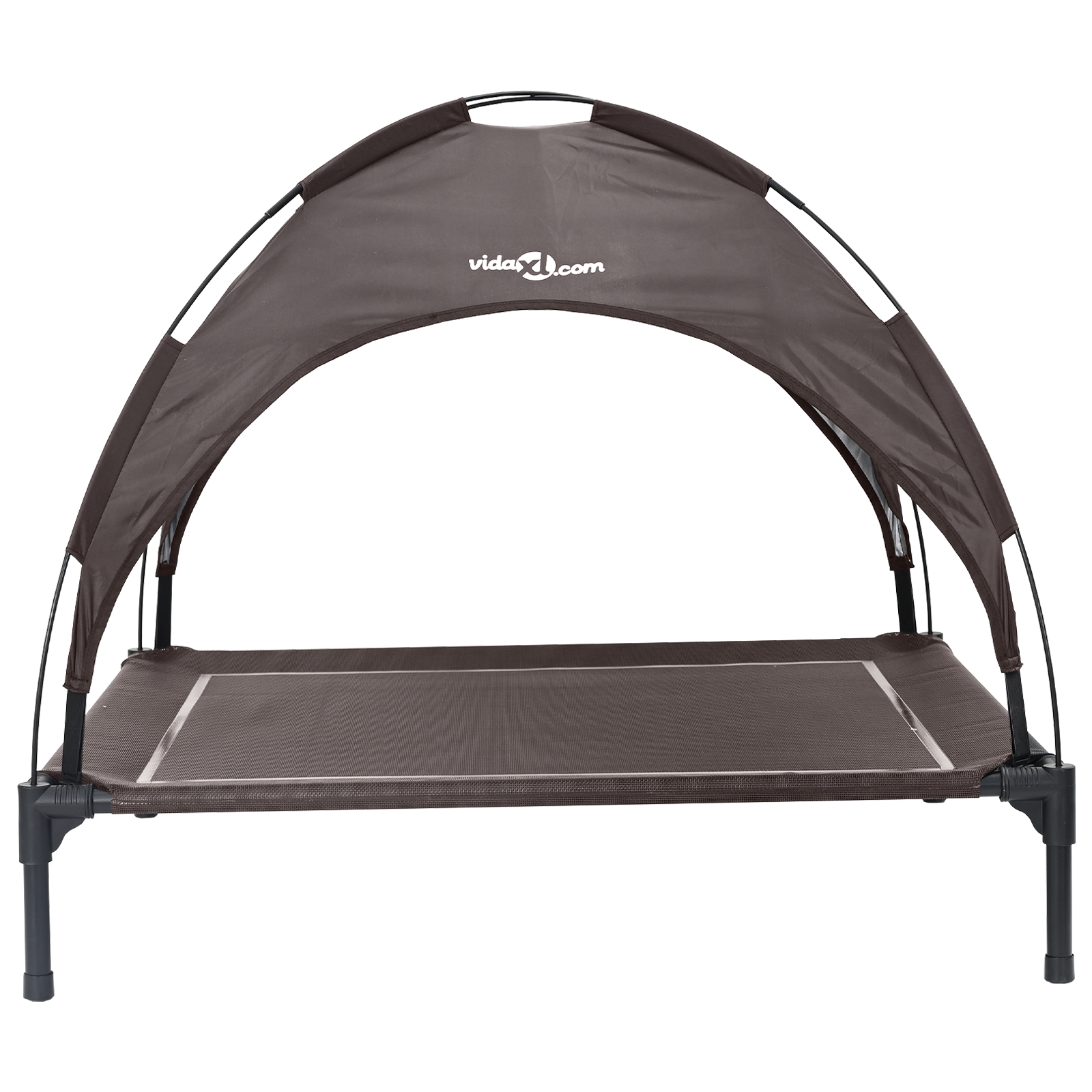 VidaXL vyvýšená psia posteľ s odnímateľnou strechou Hnedý L Oceľ