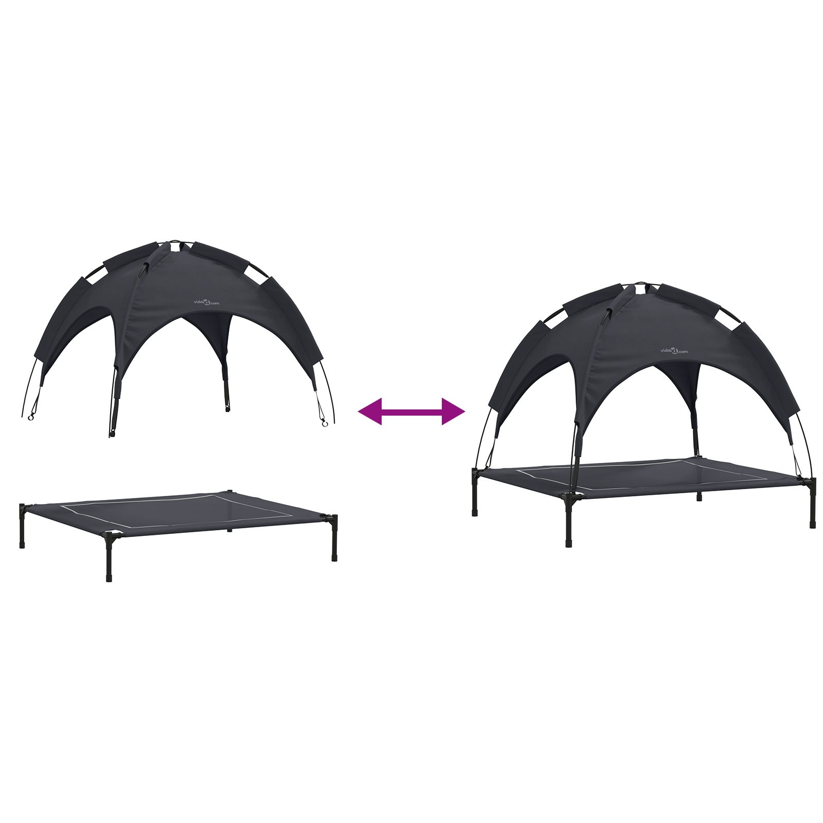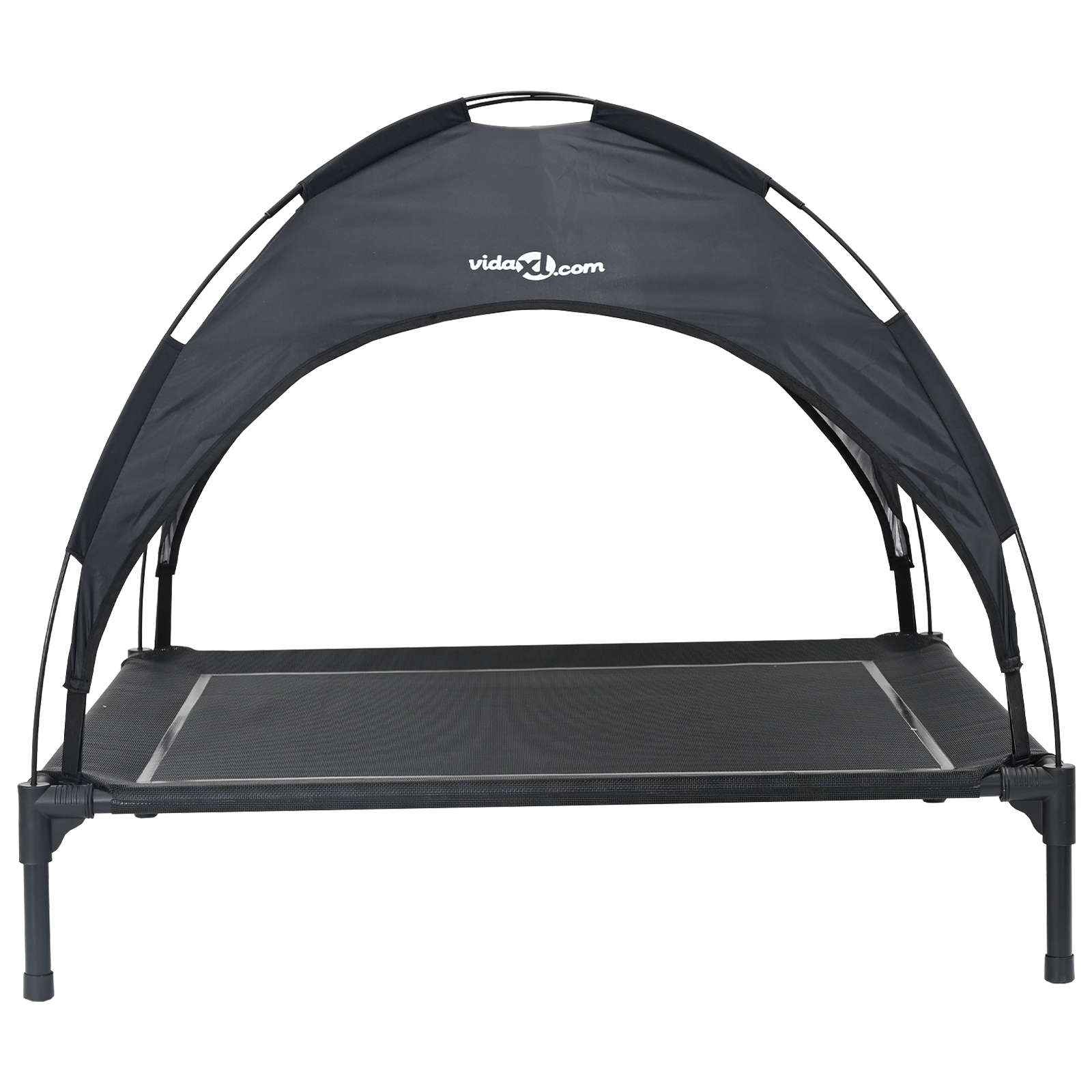 vidaXL Vyvýšená psia postel s odnímateľným prístreškom Čierna L Oceľ