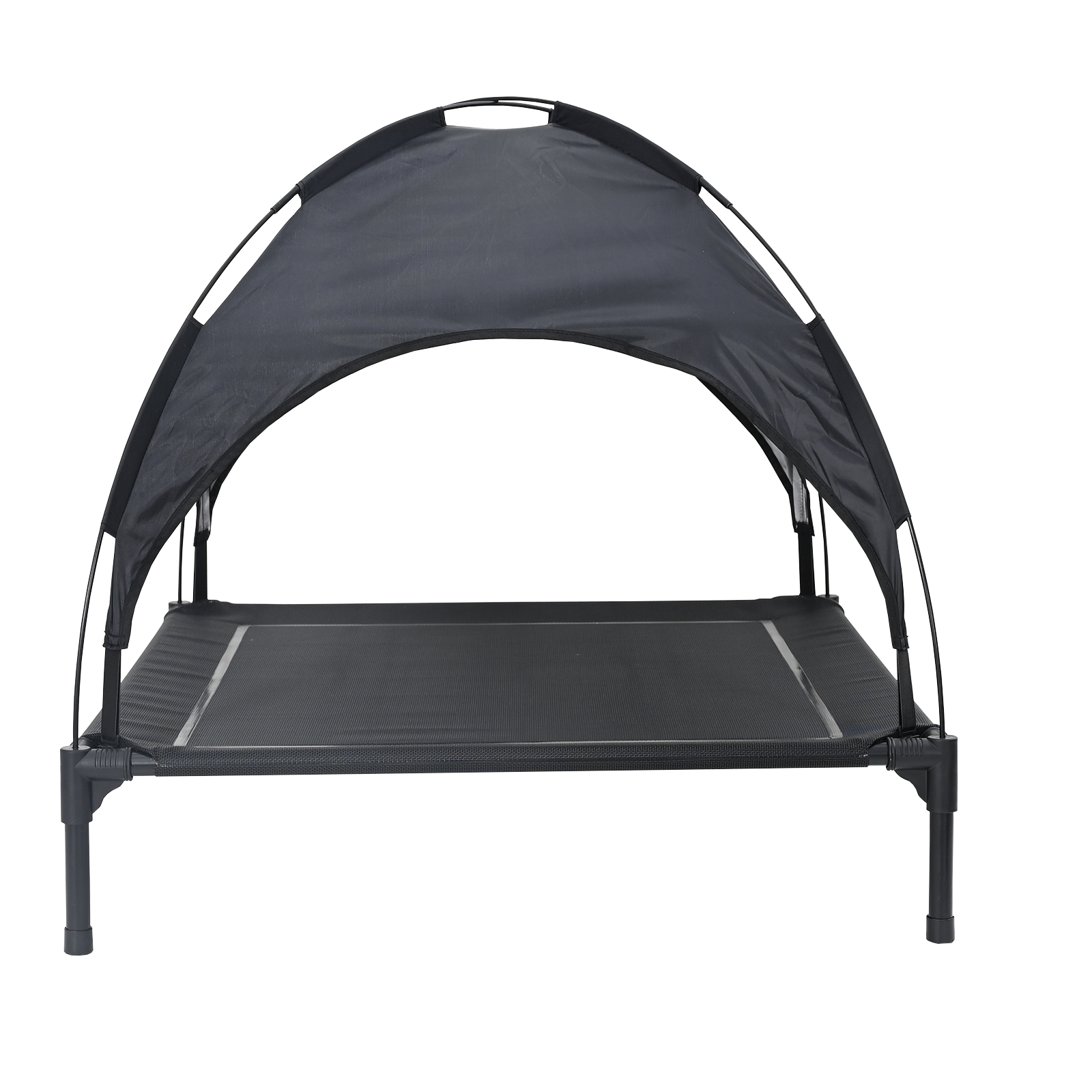 Táto veľká vyvýšená psia postel je ideálna pre veľké plemená, ponúka im priestranné miesto na odpočinok s praktickým prístreškom. Inteligentný čierny dizajn poskytuje komfort a zlepšuje prúdenie vzduchu, tým vytvára útulný a priedušný priestor pre vášho domáceho miláčika.