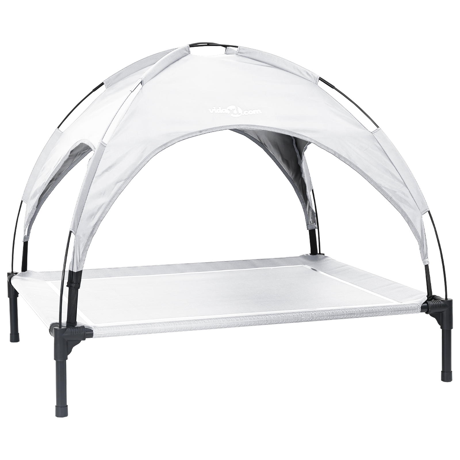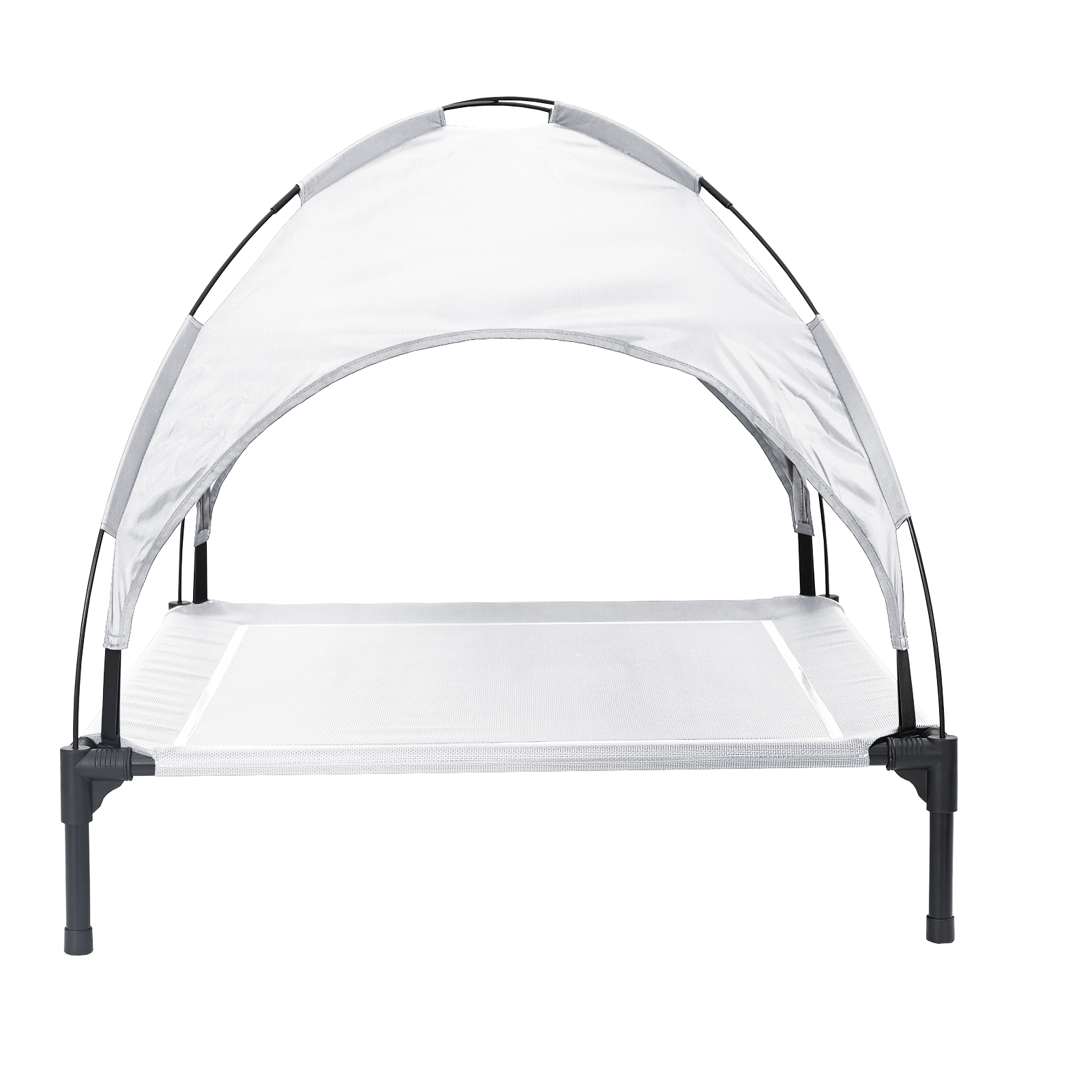 Táto vyvýšená psia posteľ je skvelá pre stredne veľké a veľké plemená. Poskytuje pohodlné vonkajšie miesto na oddych s praktickou strechou. Moderný strieborný šedý dizajn vyzerá super a vytvára vyvýšené usporiadanie, ktoré je pohodlné a zlepšuje prúdenie vzduchu, takže váš pes bude v pohode.