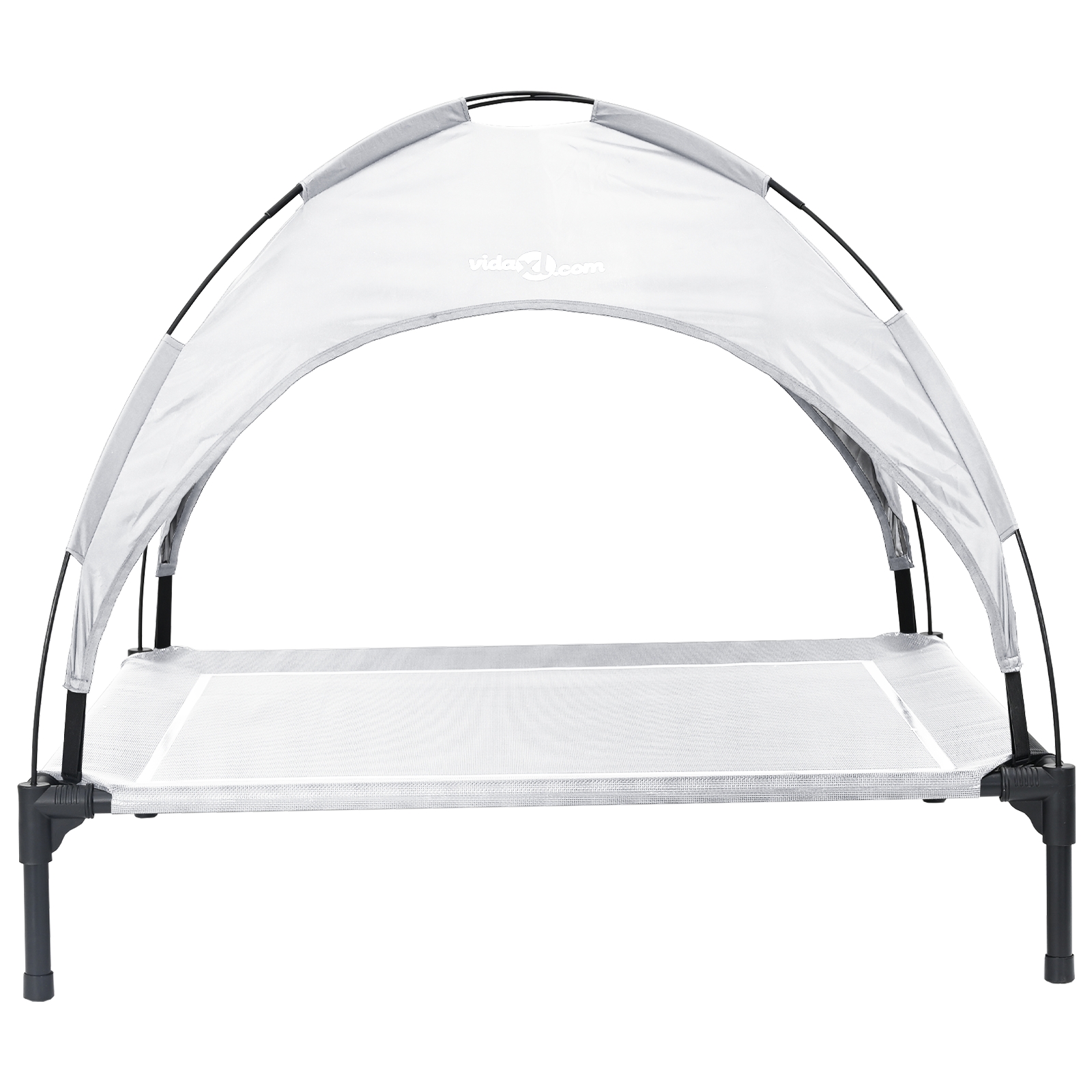 vidaXL Vyvýšená psia posteľ so strechou strieborná šedá XL oceľ