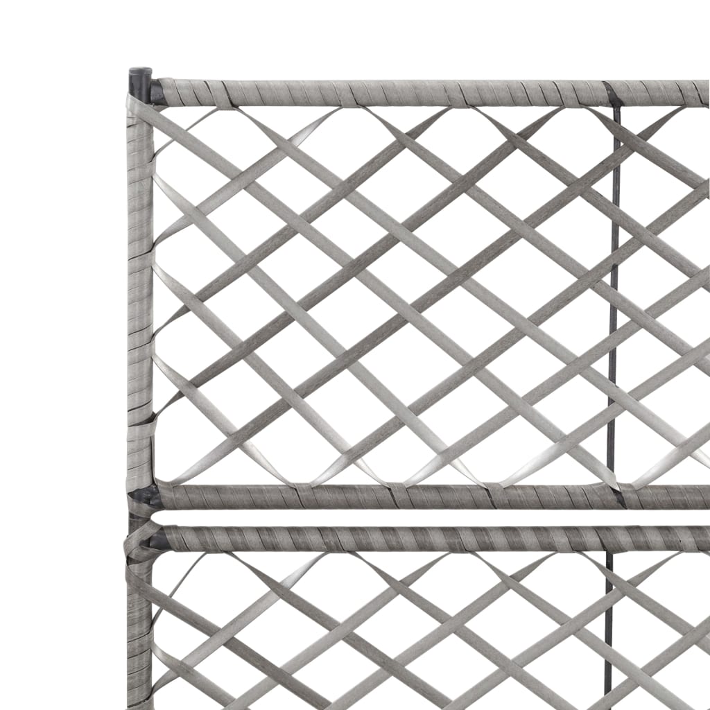 vidaXL Vyvýšený záhon+mriežka, 2 nádoby 58x30x107 cm, polyratan, sivý