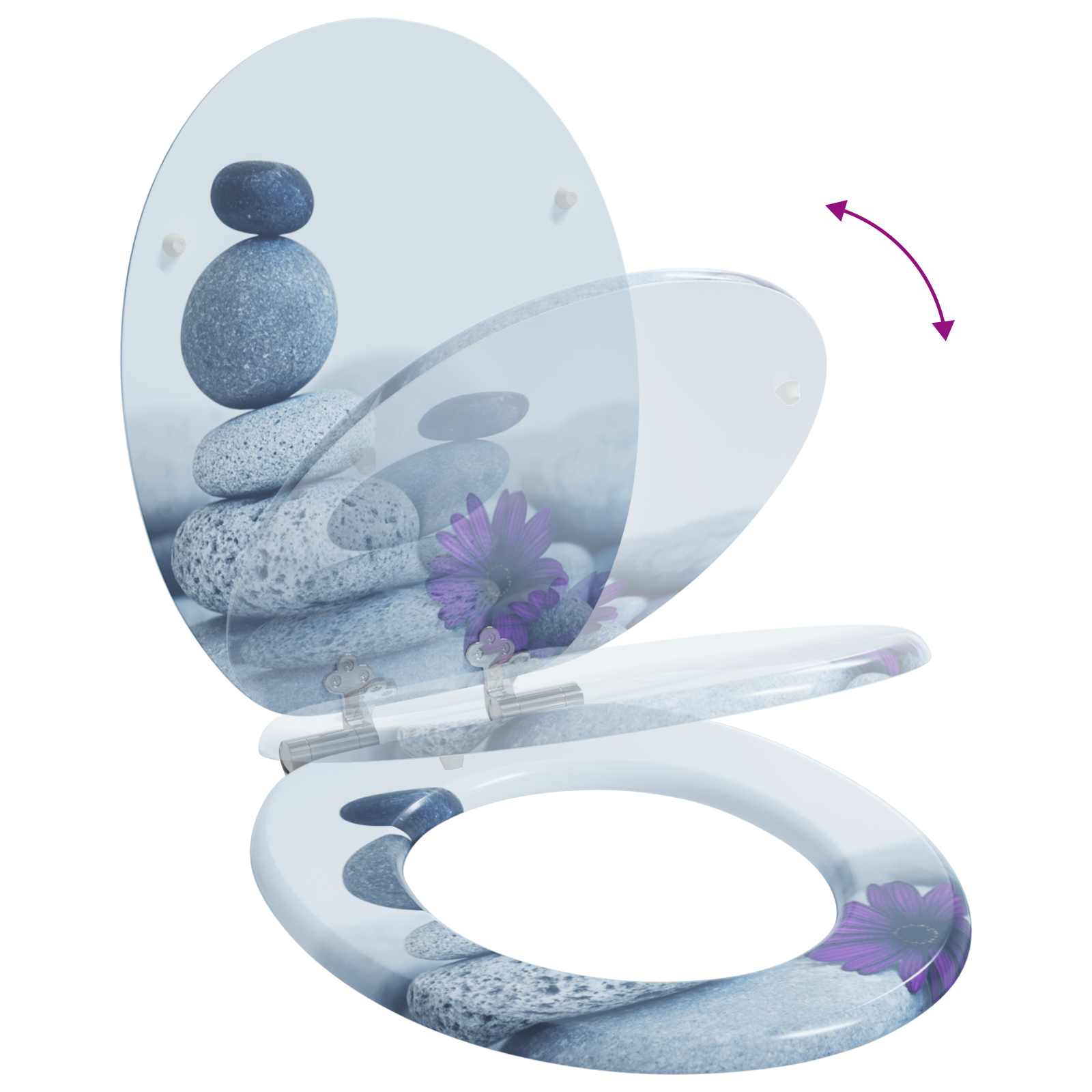 • Pomalé zavieranie Zabráni hlasitým zvukom pri zabuchovaní toalety. Tento mechanizmus zaručuje tiché zatváranie, čím znižuje riziko zranenia a predlžuje životnosť produktu. Ideálne na miesta, kde sú deti, kde je bezpečnosť kľúčová.