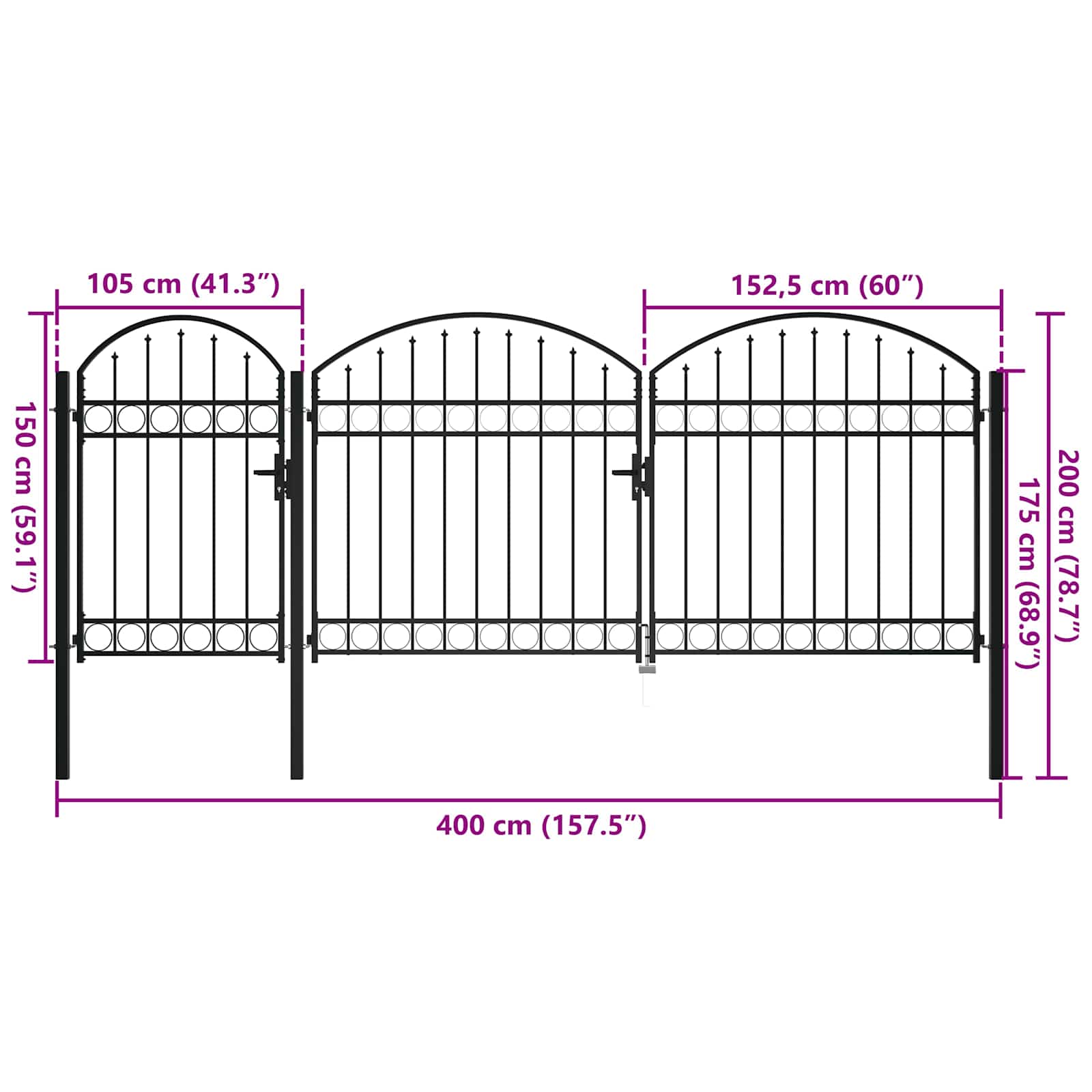 vidaXL Záhradná brána Čierna 200 x 400 cm Oceľ vidaXL Záhradná brána Čierna 200 x 400 cm Oceľ
