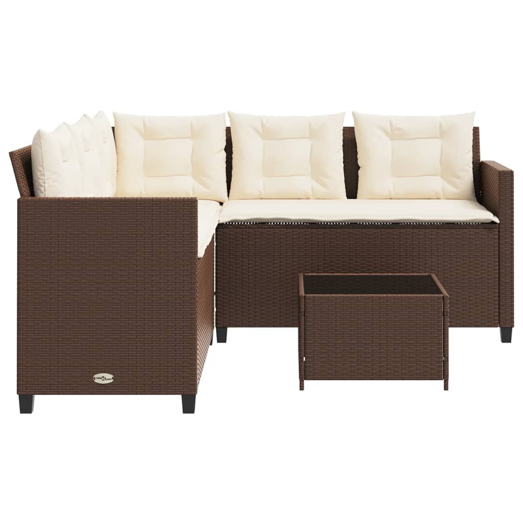 vidaXL Záhradná pohovka so stolíkom a vankúšmi tvar L hnedá polyratan