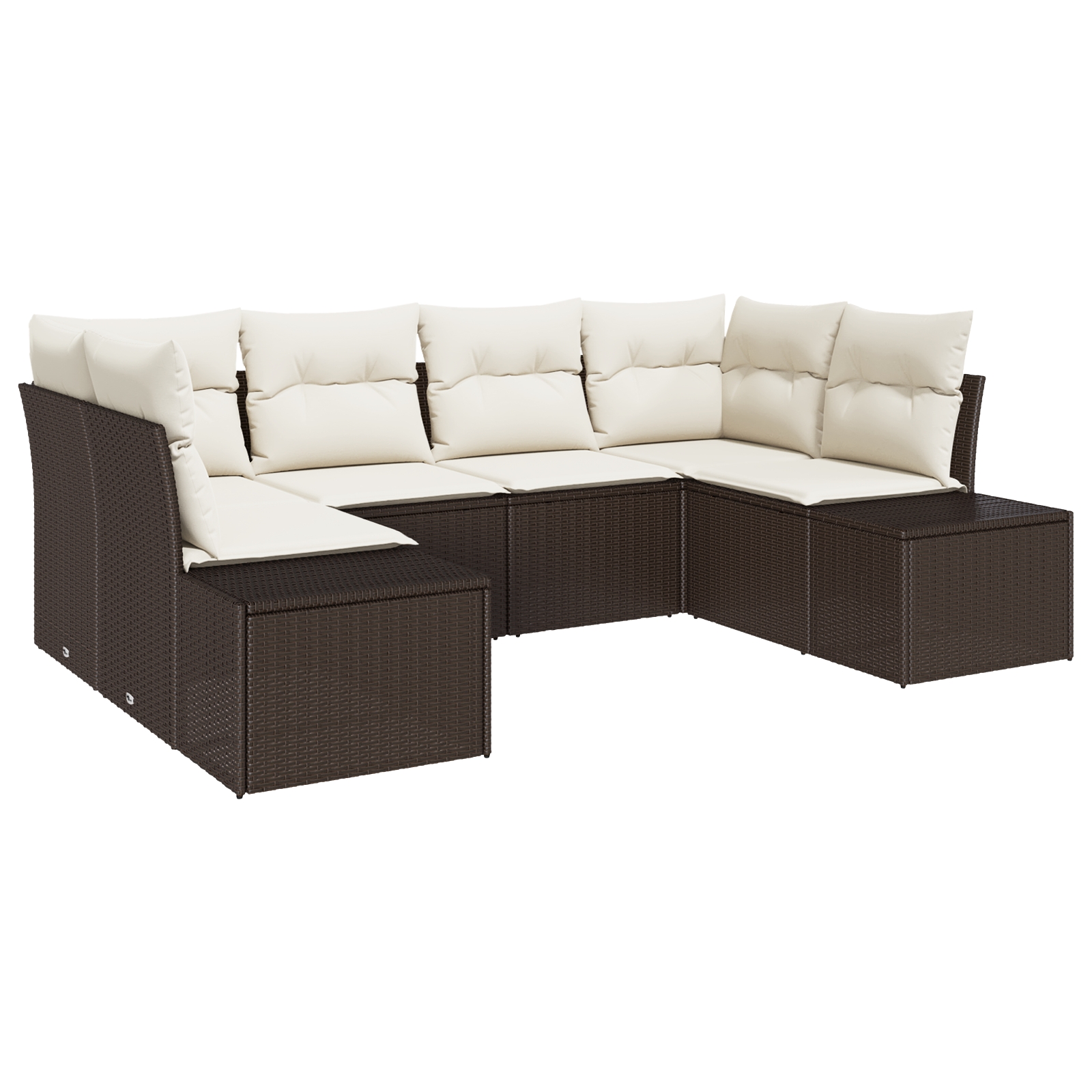 Tento 6-dielny záhradný set pohoviek je naozaj skvelý doplnok do vášho vonkajšieho priestoru, spája štýlovosť a funkčnosť. Má trendy vzhľad s hnedými a krémovými farbami, ktoré spravia z každej záhrady, balkóna či patia útulné miesto na stretnutie. Má rohové a stredné sedačky s bočnými pohovkami, takže je tu dostatok miesta na relax s rodinou a kamarátmi na slnečné dni a teplé večery.