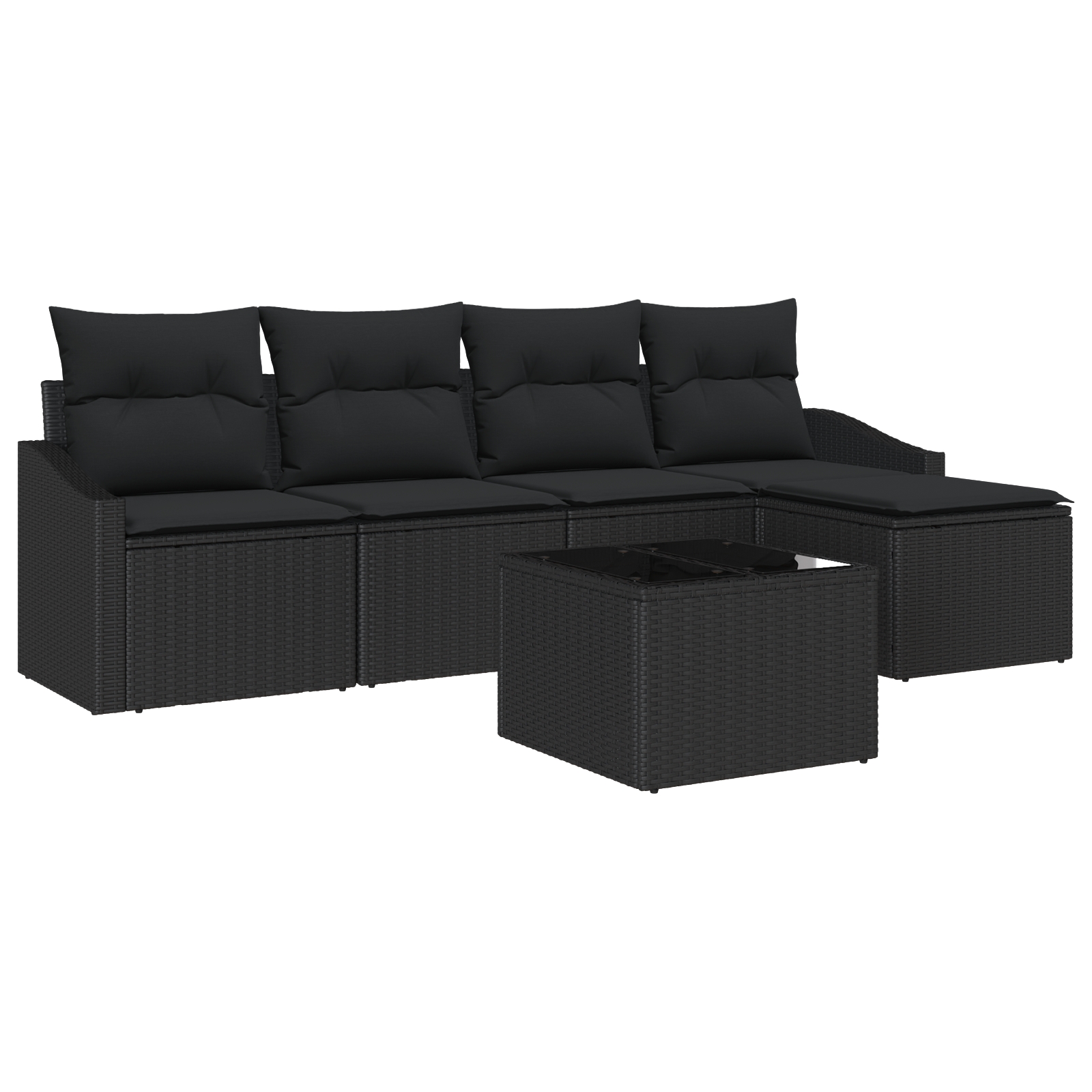 vidaXL Záhradná súprava pohoviek Súprava 6 Čierna Ratan, polyester, oceľ