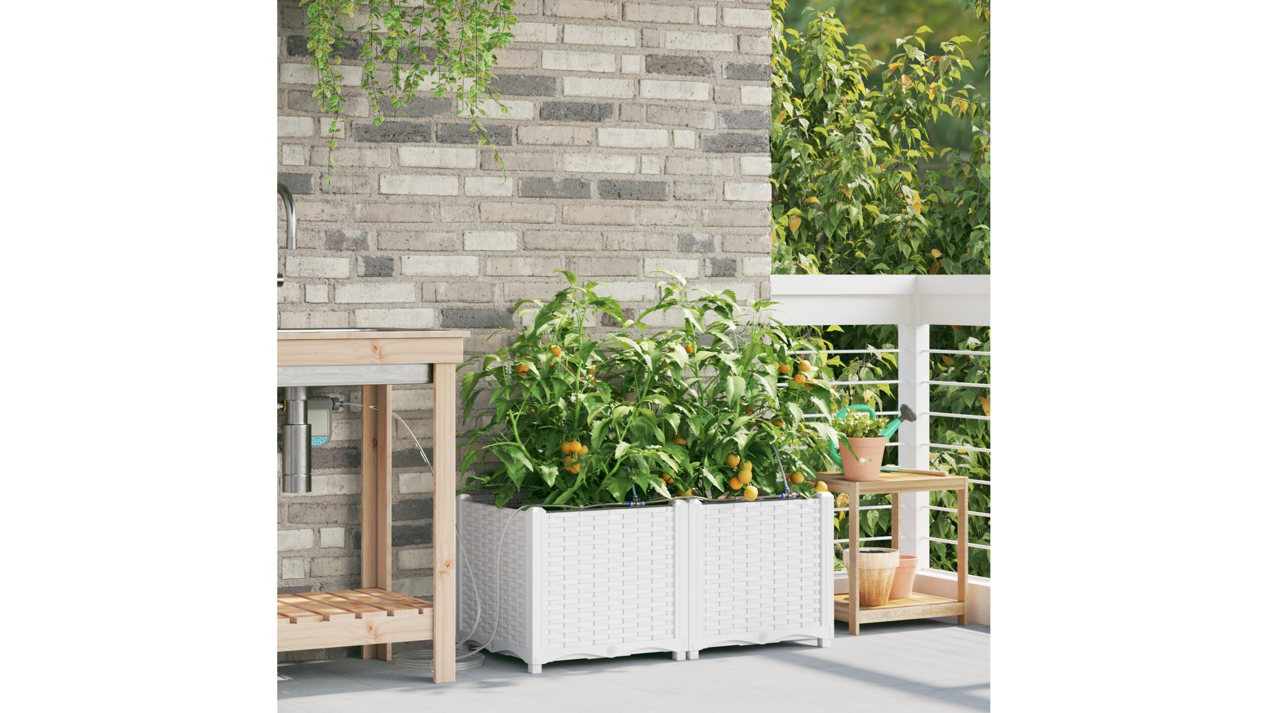 vidaXL Záhradné kvetináče s vodným zavlažovacím systémom 2 ks Biela