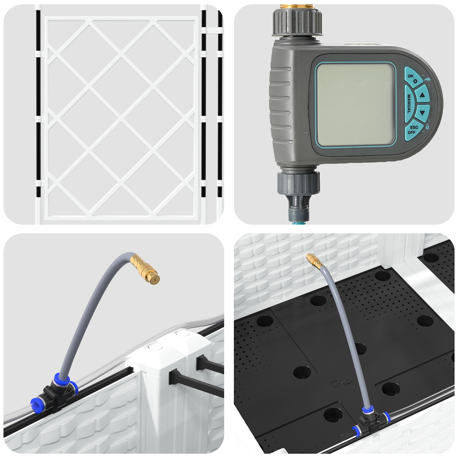 Tento moderný biely kvetináč s treliskom je skvelá kombinácia štýlu a funkčnosti, pripravený spríjemniť každé miesto – či už je to tvoj balkón alebo záhrada. Elegantný ratanový vzhľad a výškovo nastaviteľný dizajn ti umožňujú ukázať tie najlepšie rastliny a zabezpečiť, že dostanú dostatok slnečného svetla. Vytvoríš tak krásny ohniskový bod, ktorý skvele ladí s moderným štýlom.