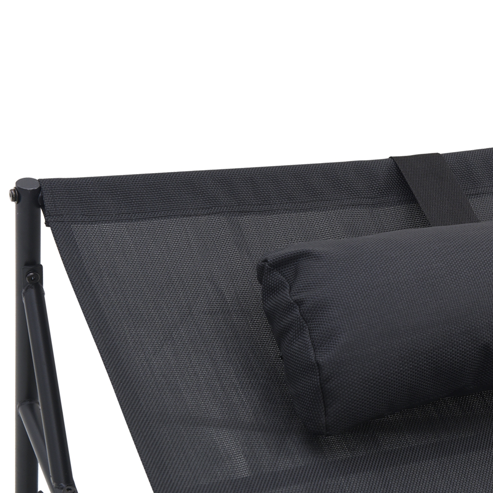 Toto vonkajšie lehátko ponúka pohodlný únik, ideálne na oddych. Jeho elegantné čierne a antracitové farby sa perfektne hodia do akéhokoľvek vonkajšieho priestoru, čo z neho robí špickovú voľbu na slnečné dni pri bazéne, na terase alebo v záhrade.